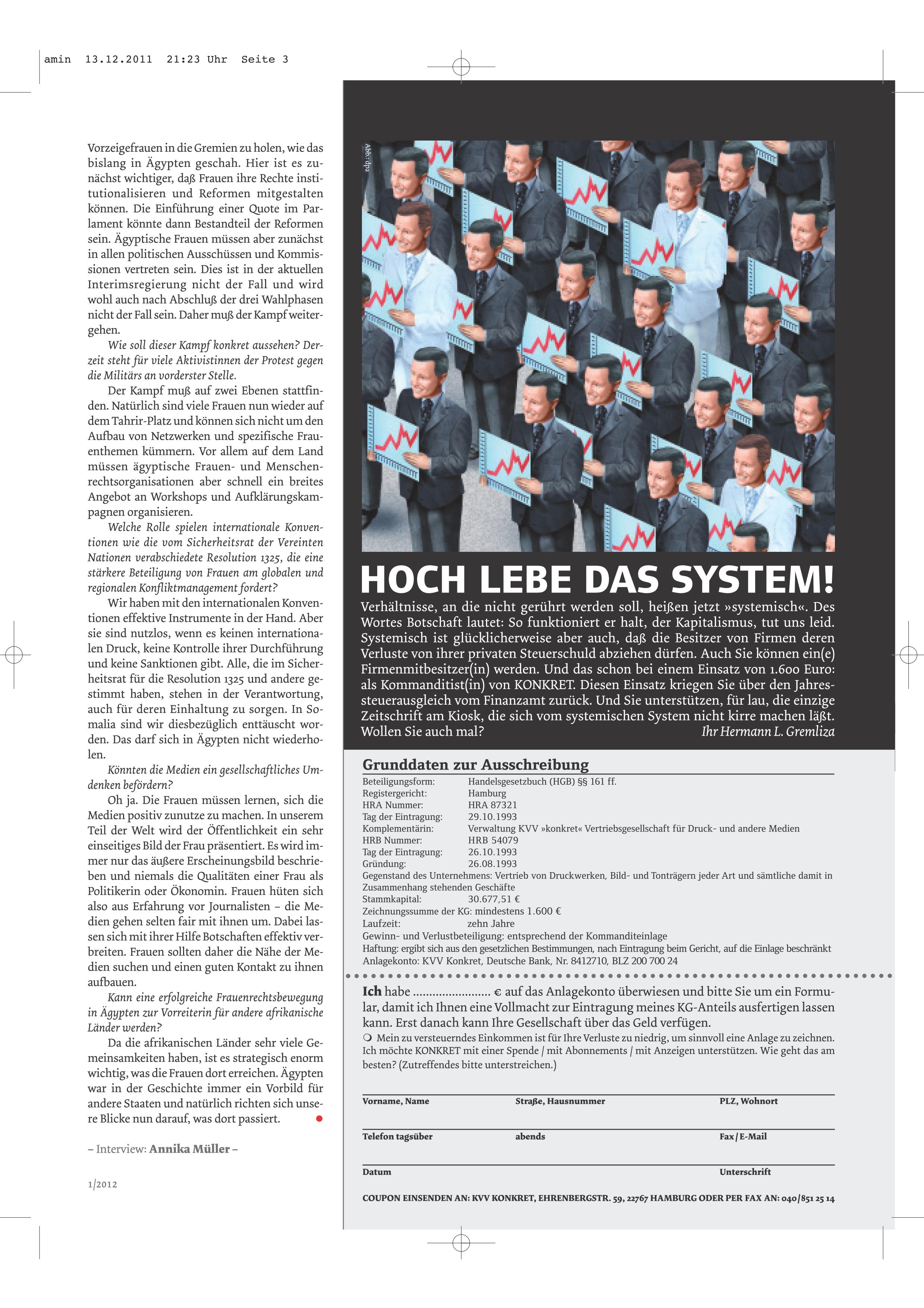 »Eine historisch einzigartige Chance«, erschienen in Konkret, Dezember 2011