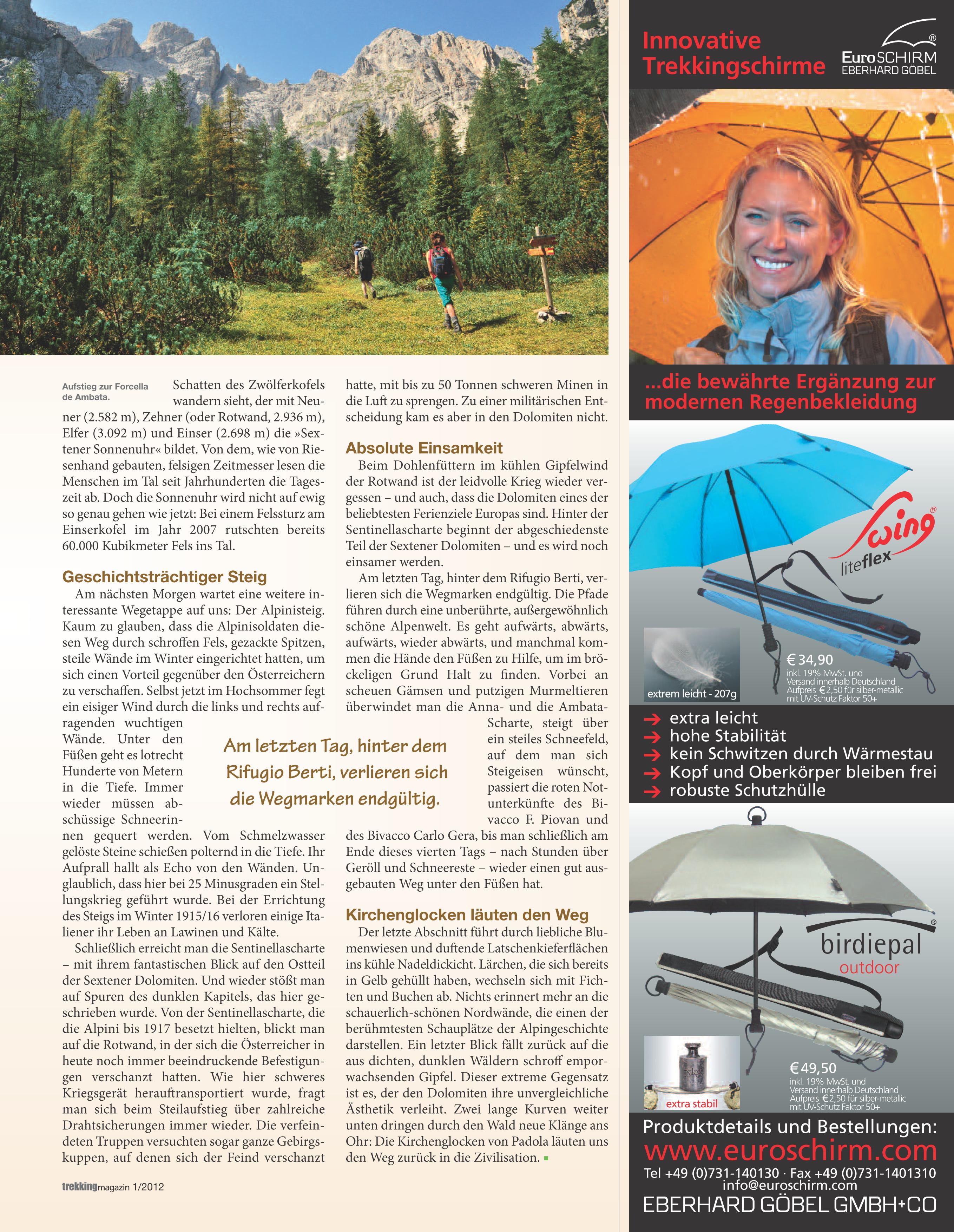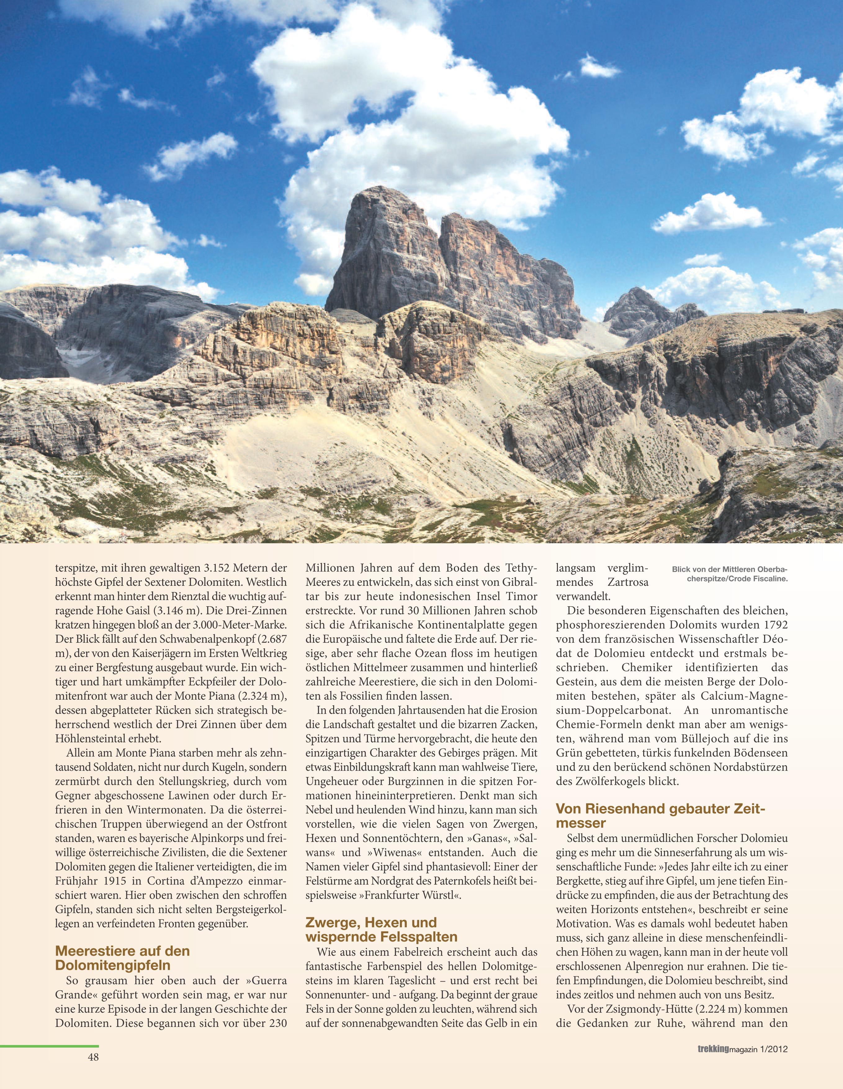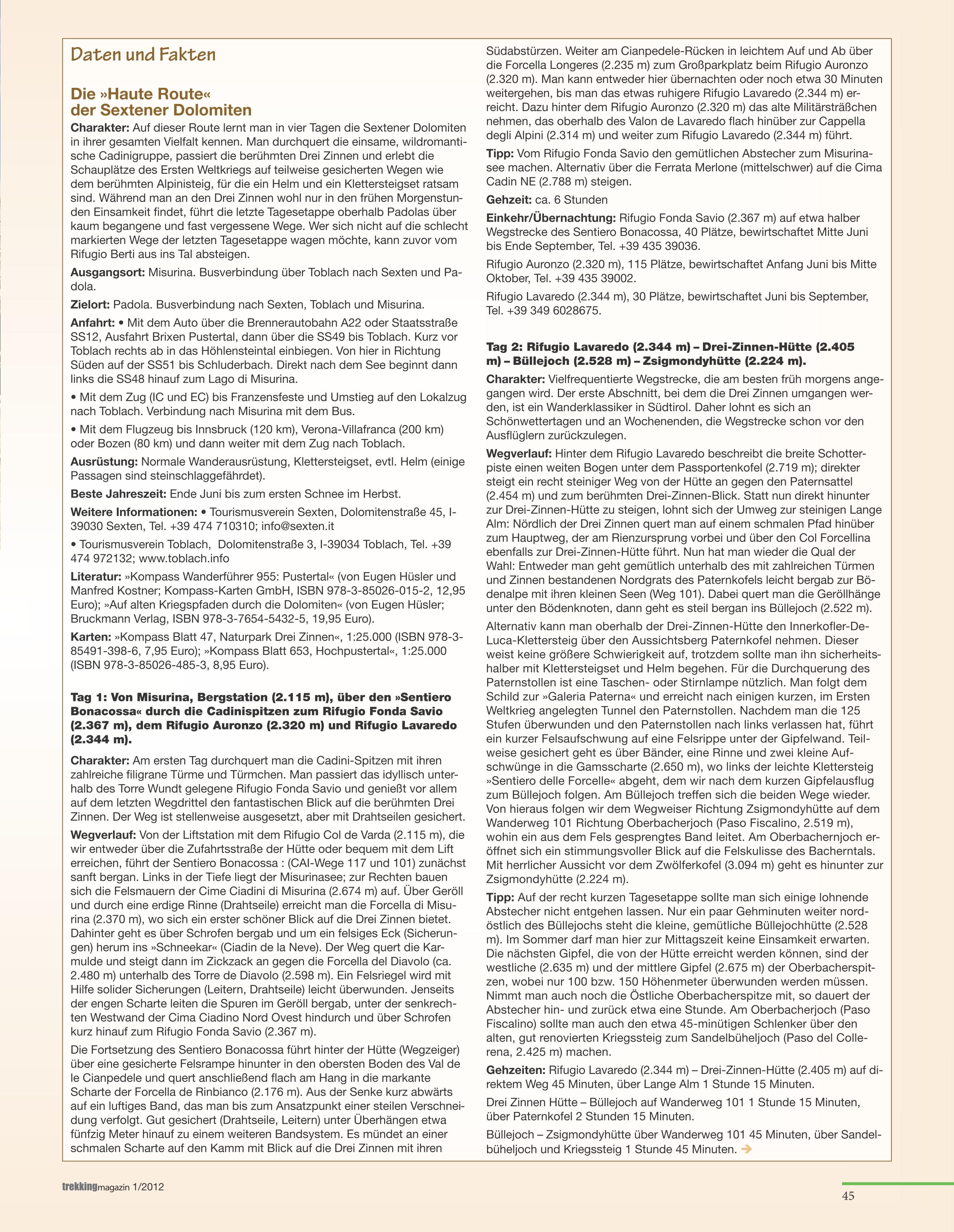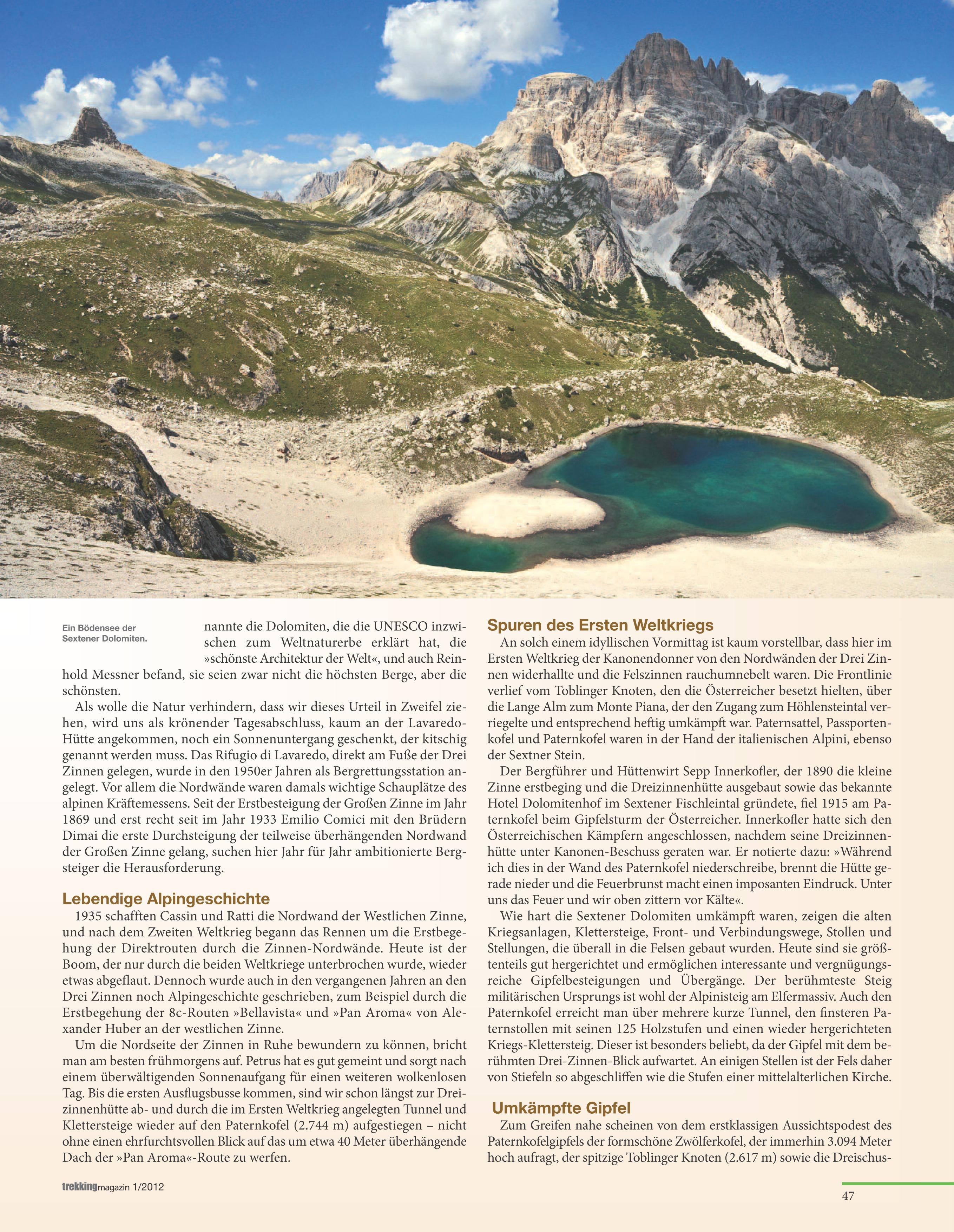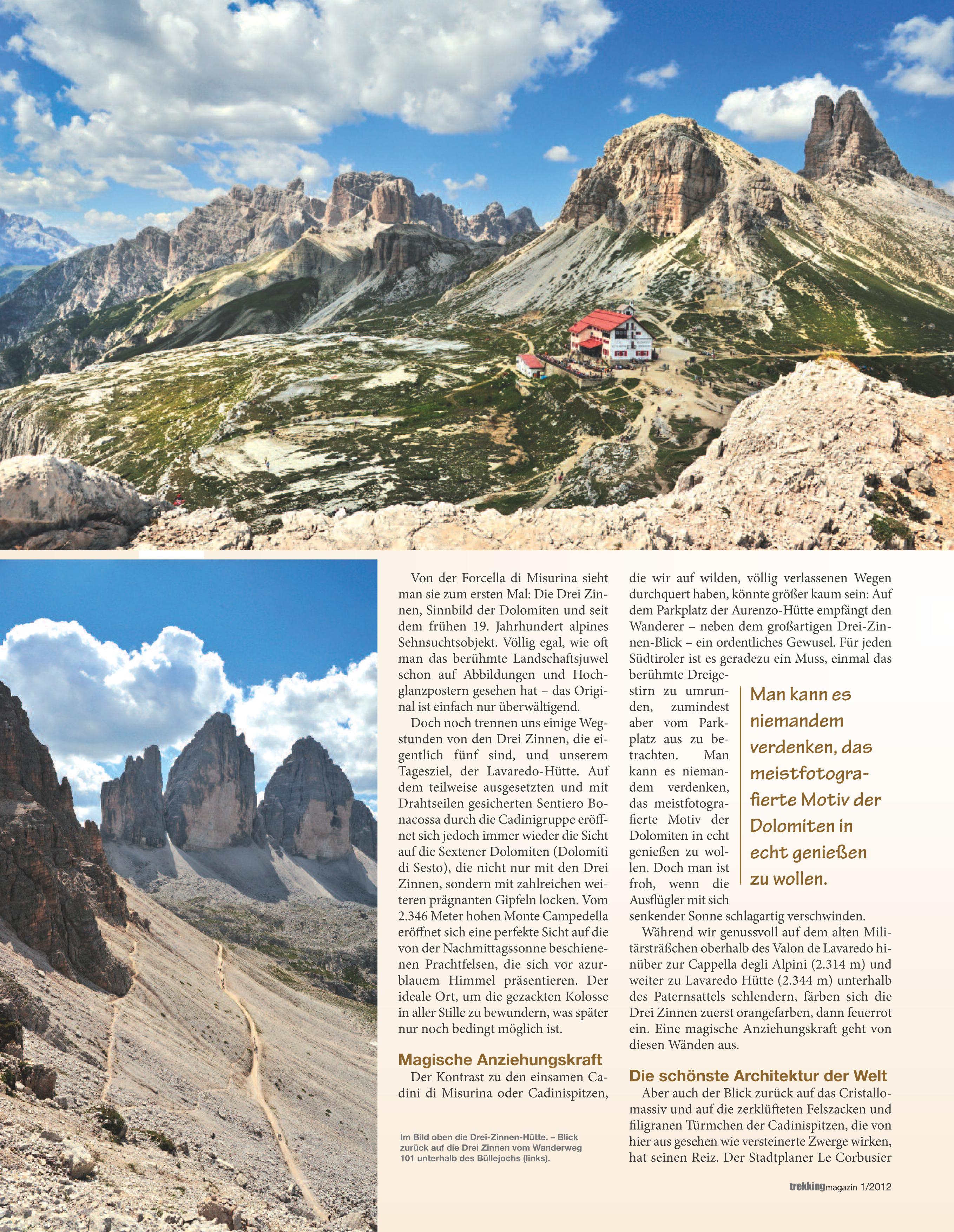 Im Bann der Drei Zinnen, erschienen in Trekking,1, Juli 2012