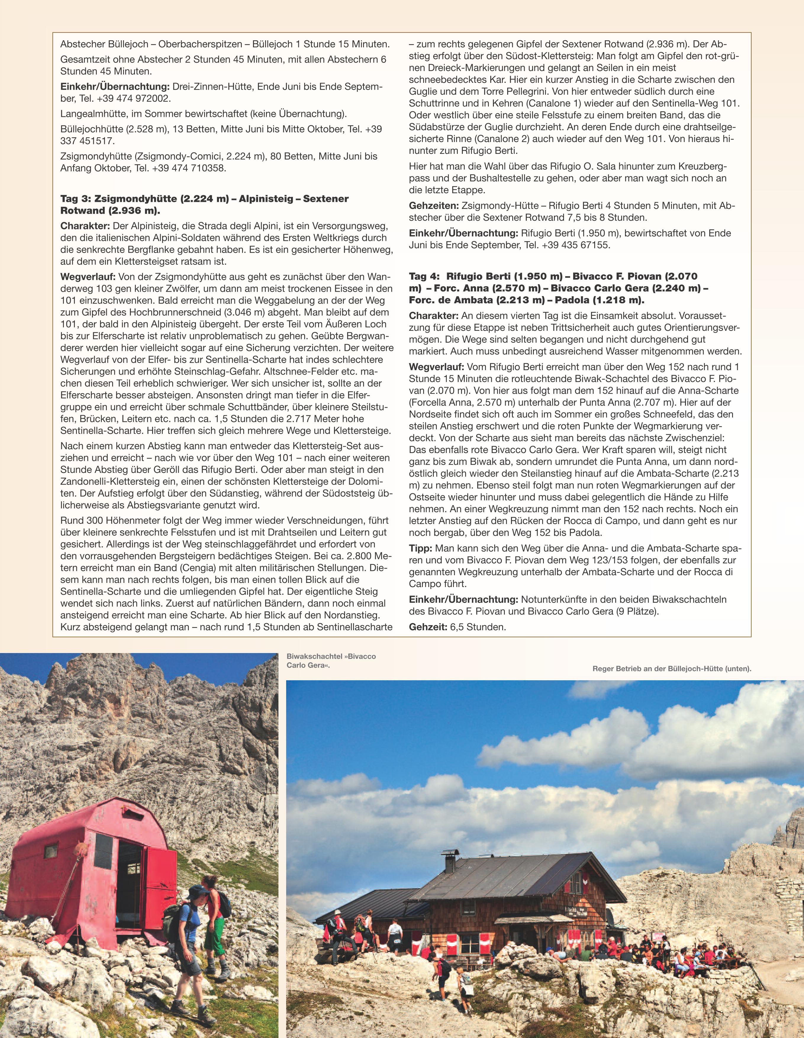 Spuren des Ersten Weltkriegs sowie der Erdgeschichte – und passiert mit den Drei Zinnen das Wahrzeichen des Gebirges.