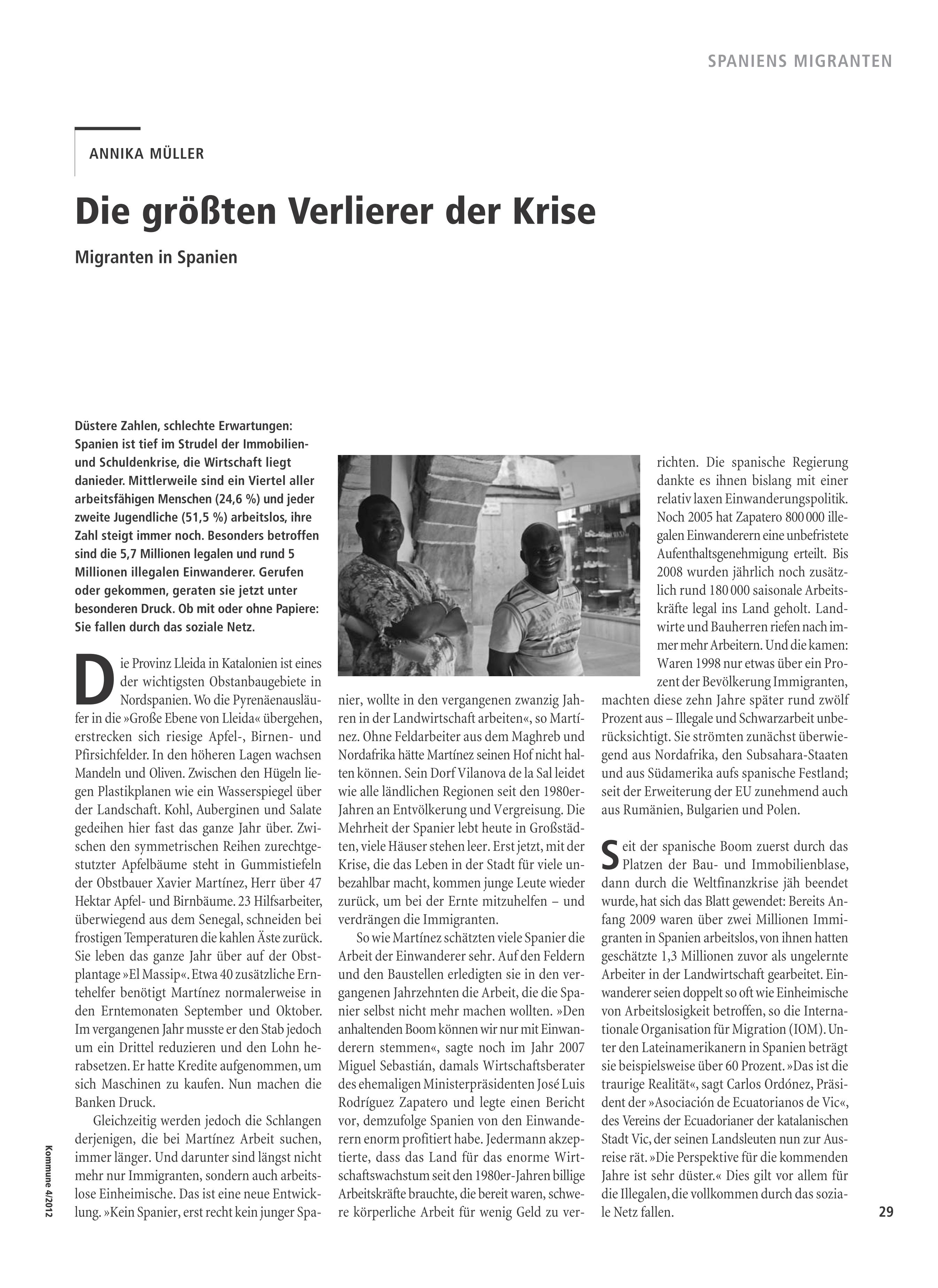 Die größten Verlierer der Krise, erschienen in Kommune 4/ 2012