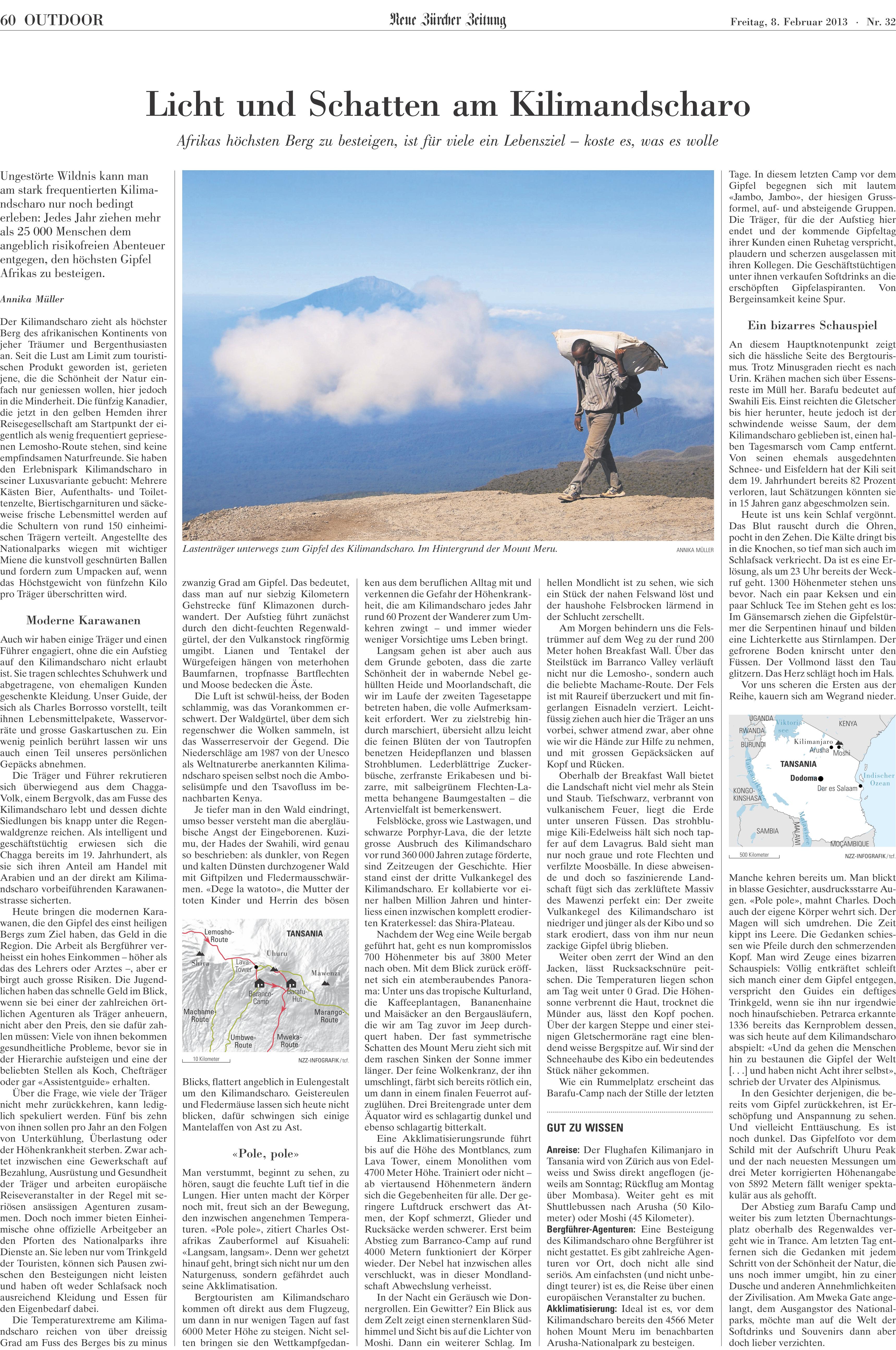 Licht und Schatten am Kilimandscharo, erschienen in NZZ, 8.2.2013