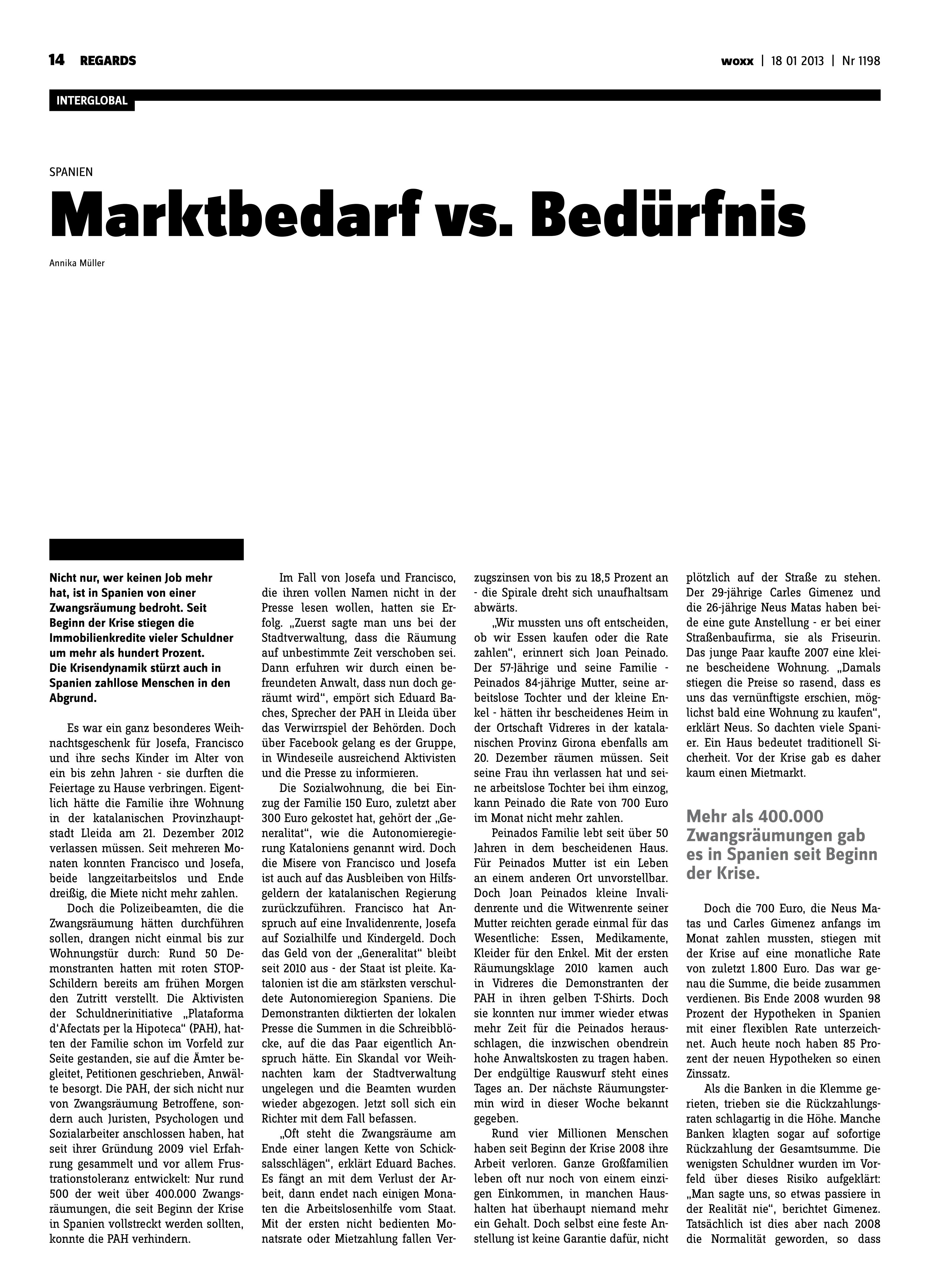 „Marktbedarf vs. Bedürfnis“, erschienen in WOXX, Luxemburg, 18. Januar 2012