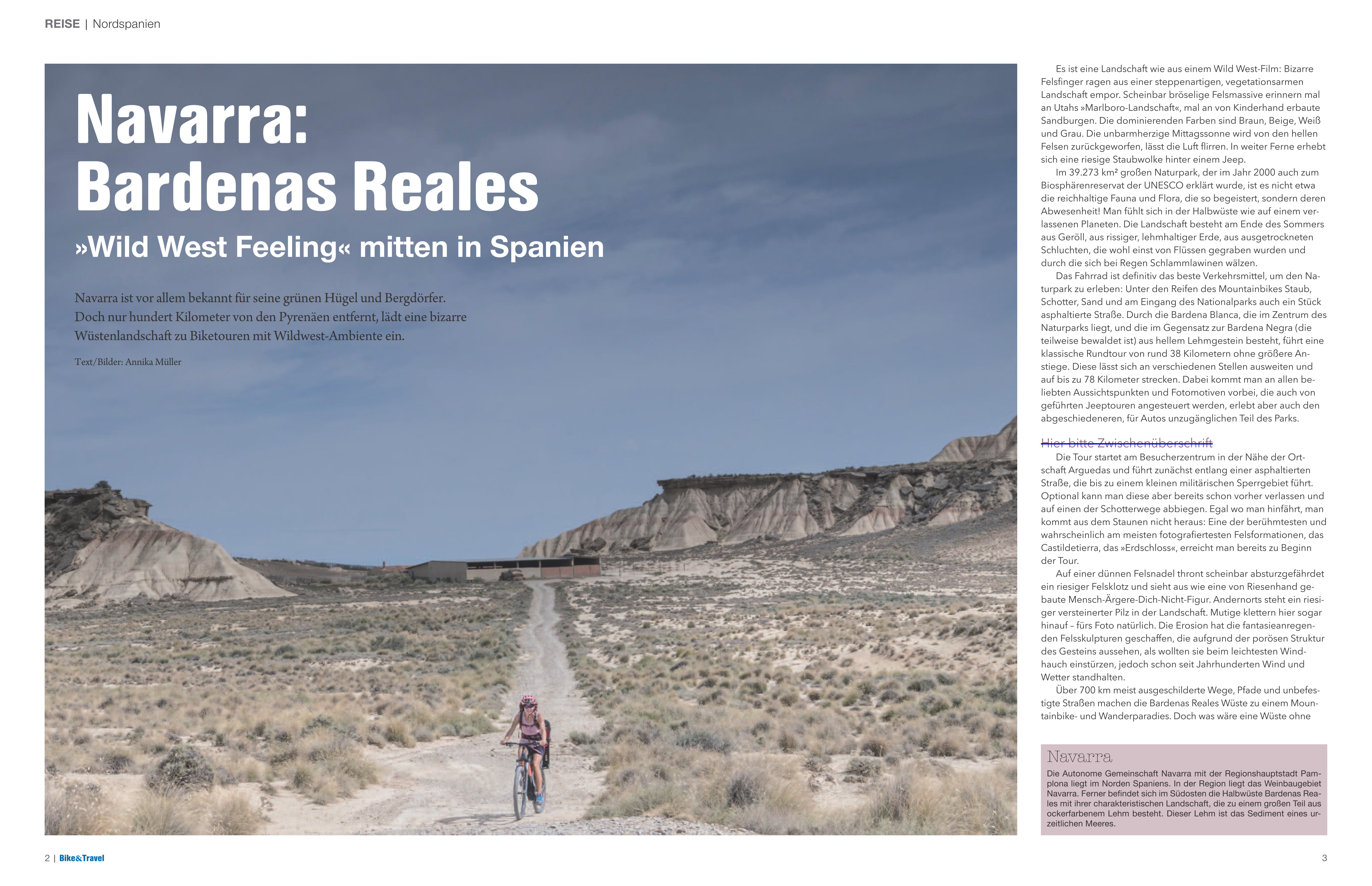 Navarra: Bardenas Reales, in bike&travel 6/2019 Magazin