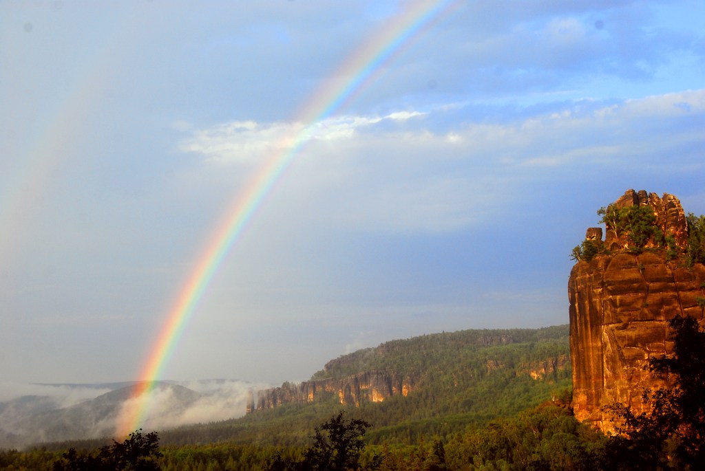 Elbsandsteingebirge Schrammsteinaussicht Regenbogen