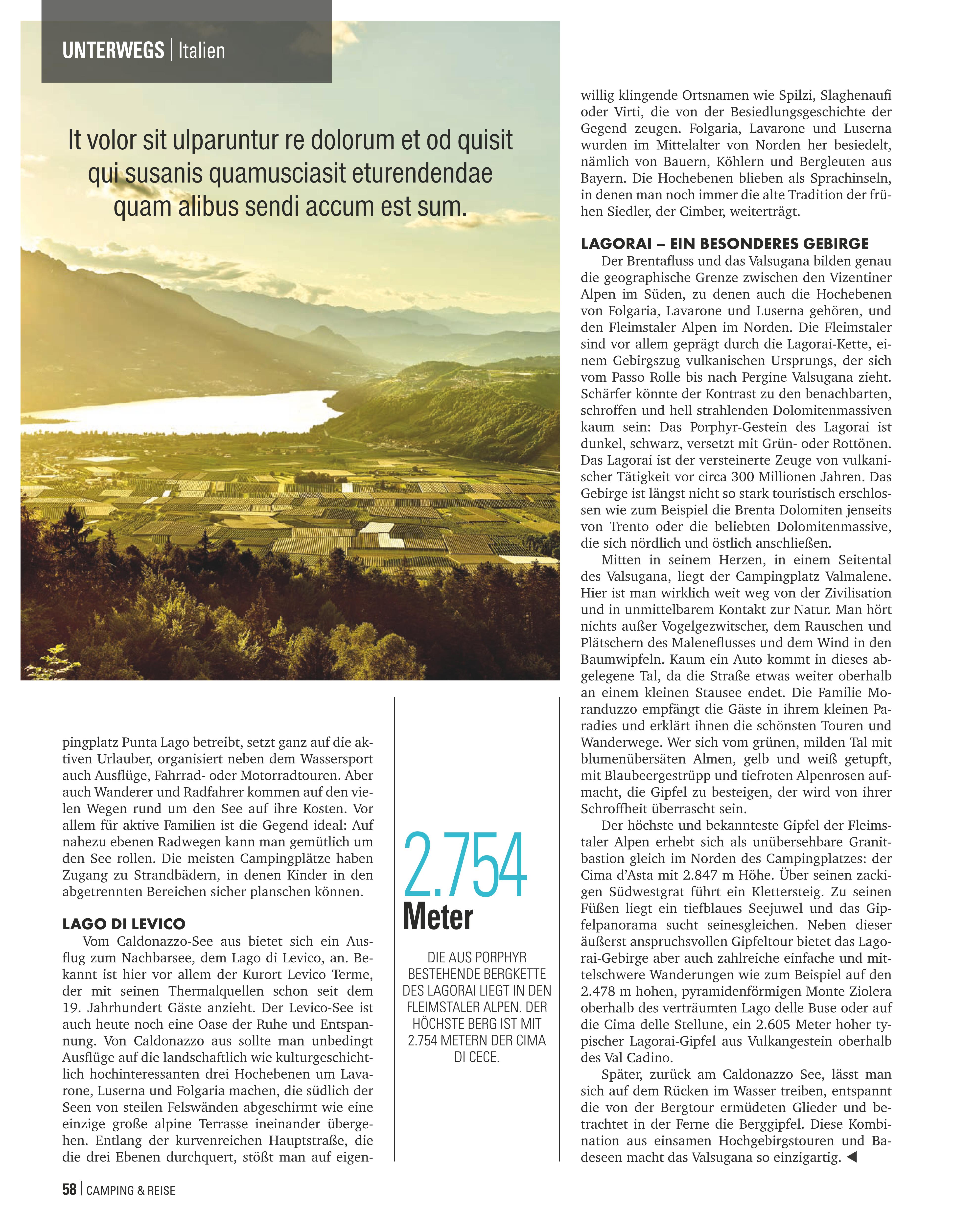 Valsugana und Lagorai, in Camping und Reise 2/2020