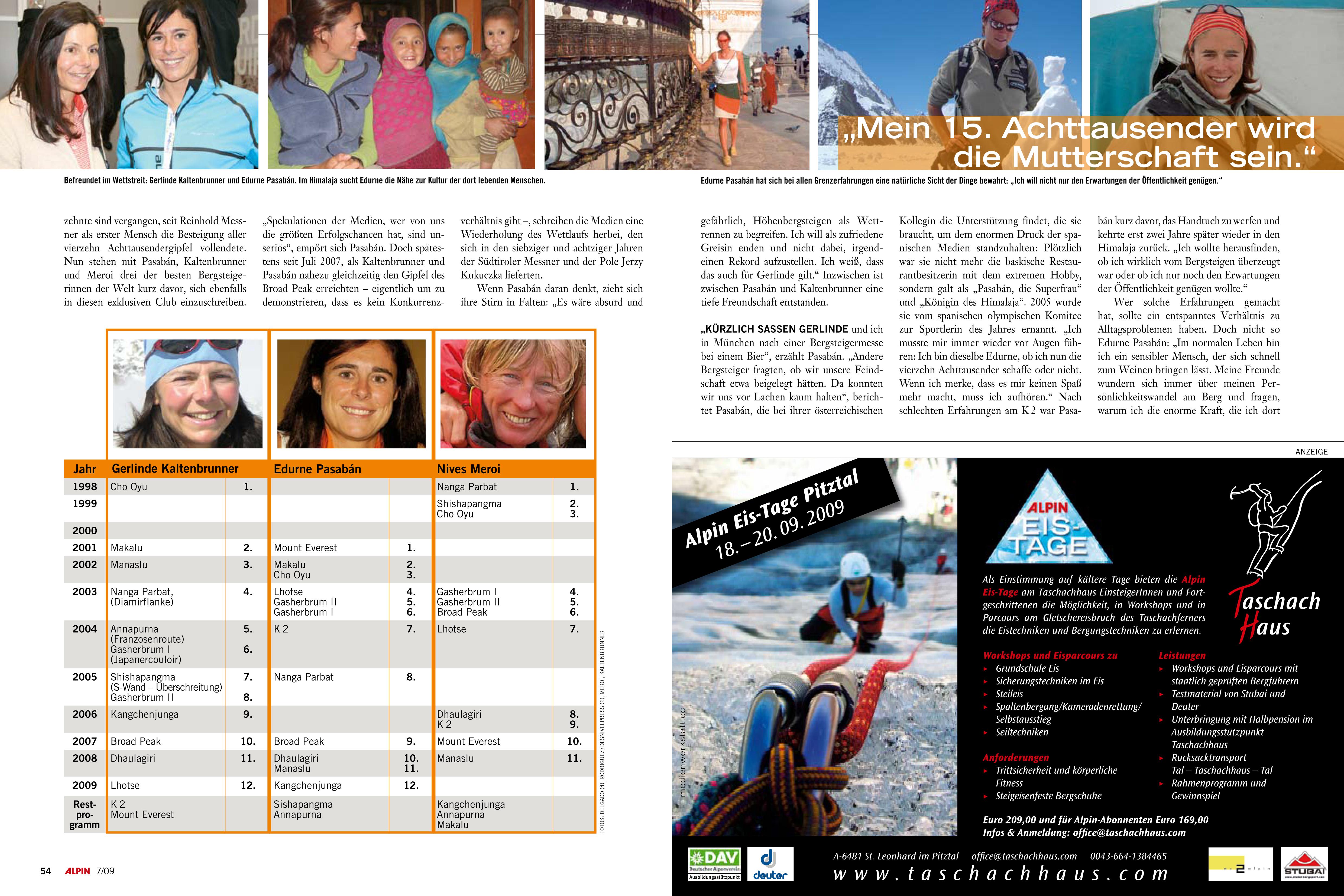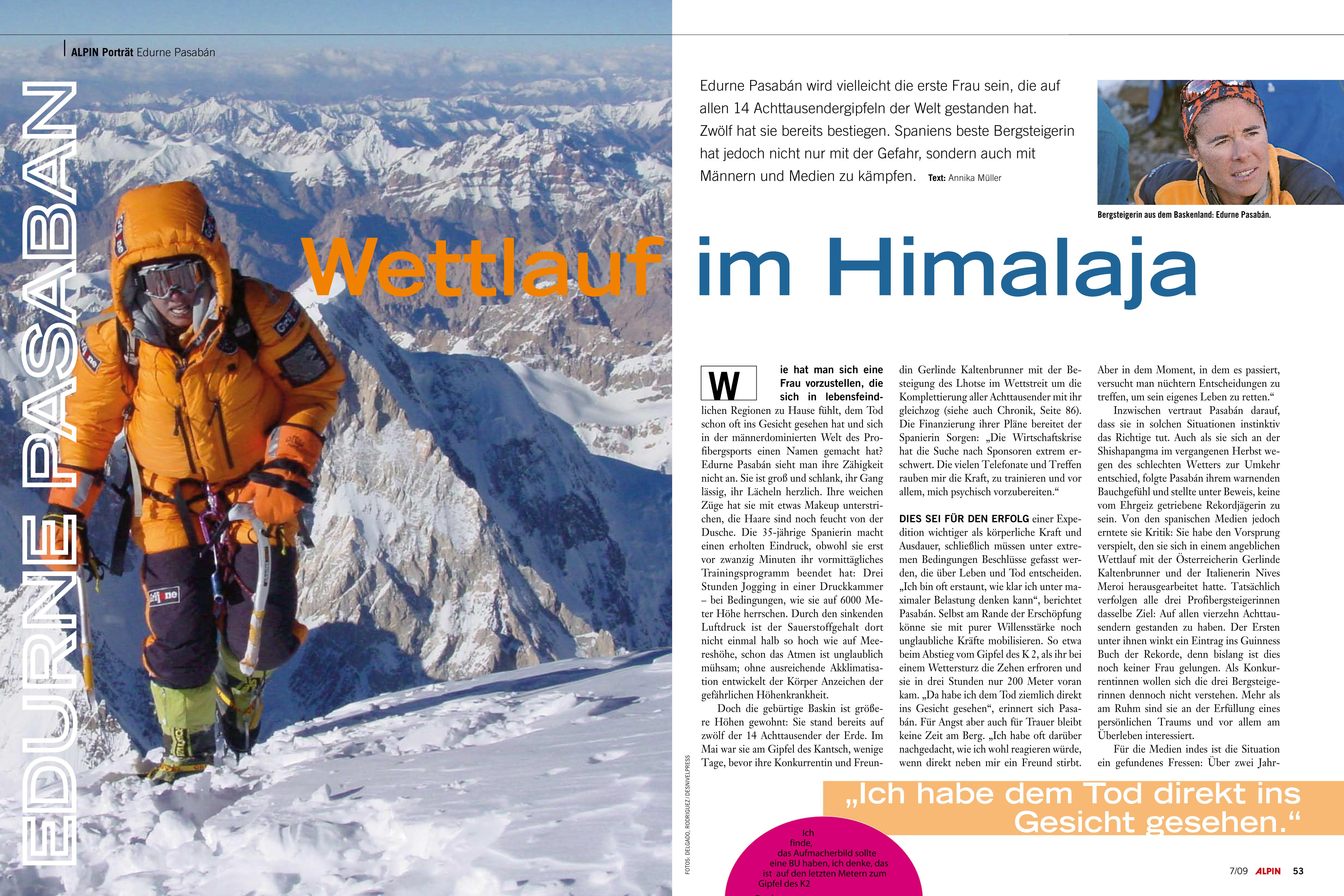 „Wettlauf im Himalaja“, erschienen in Alpin Nr. 7 2009. Artikel als PDF-Download: <a