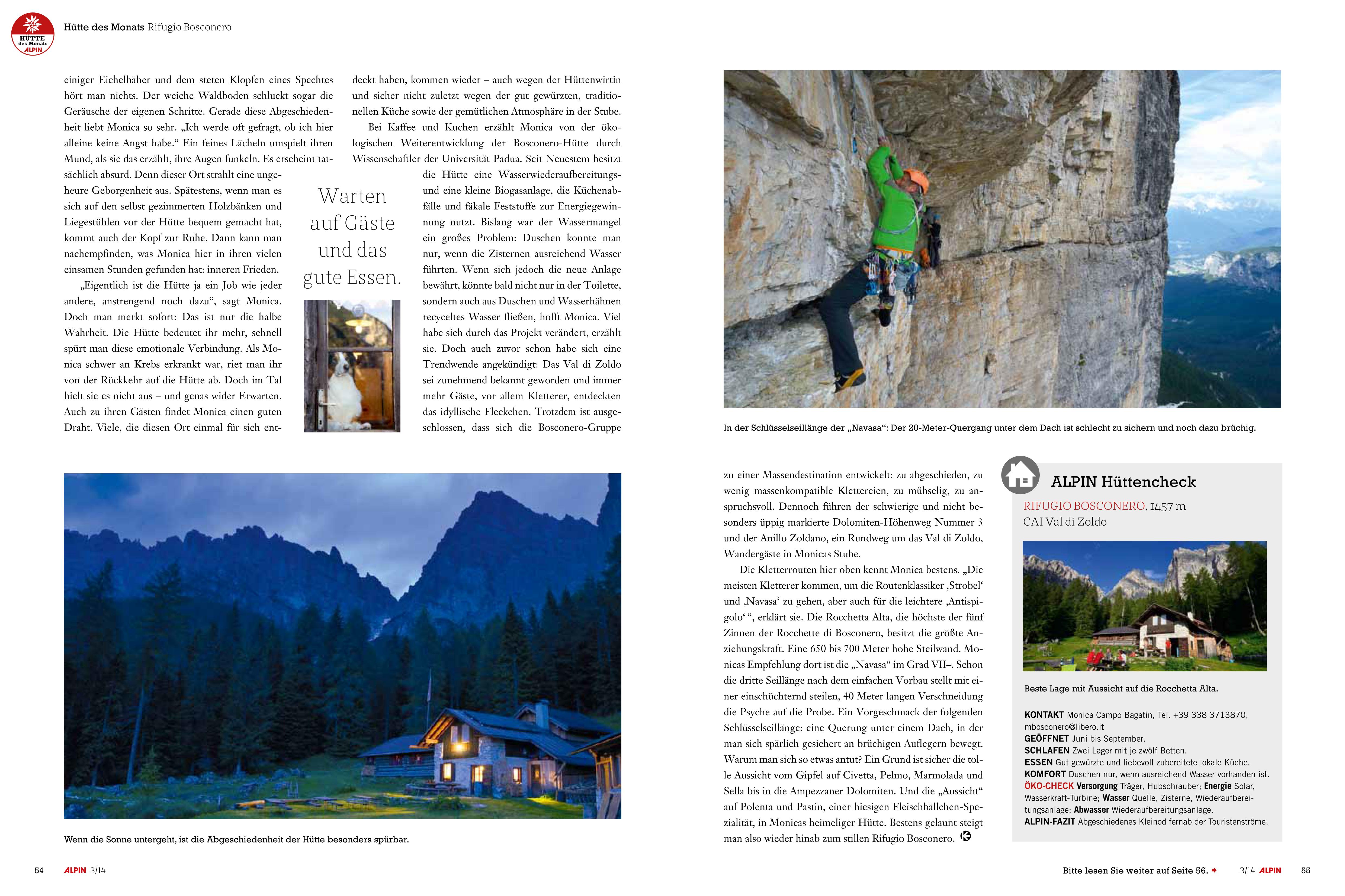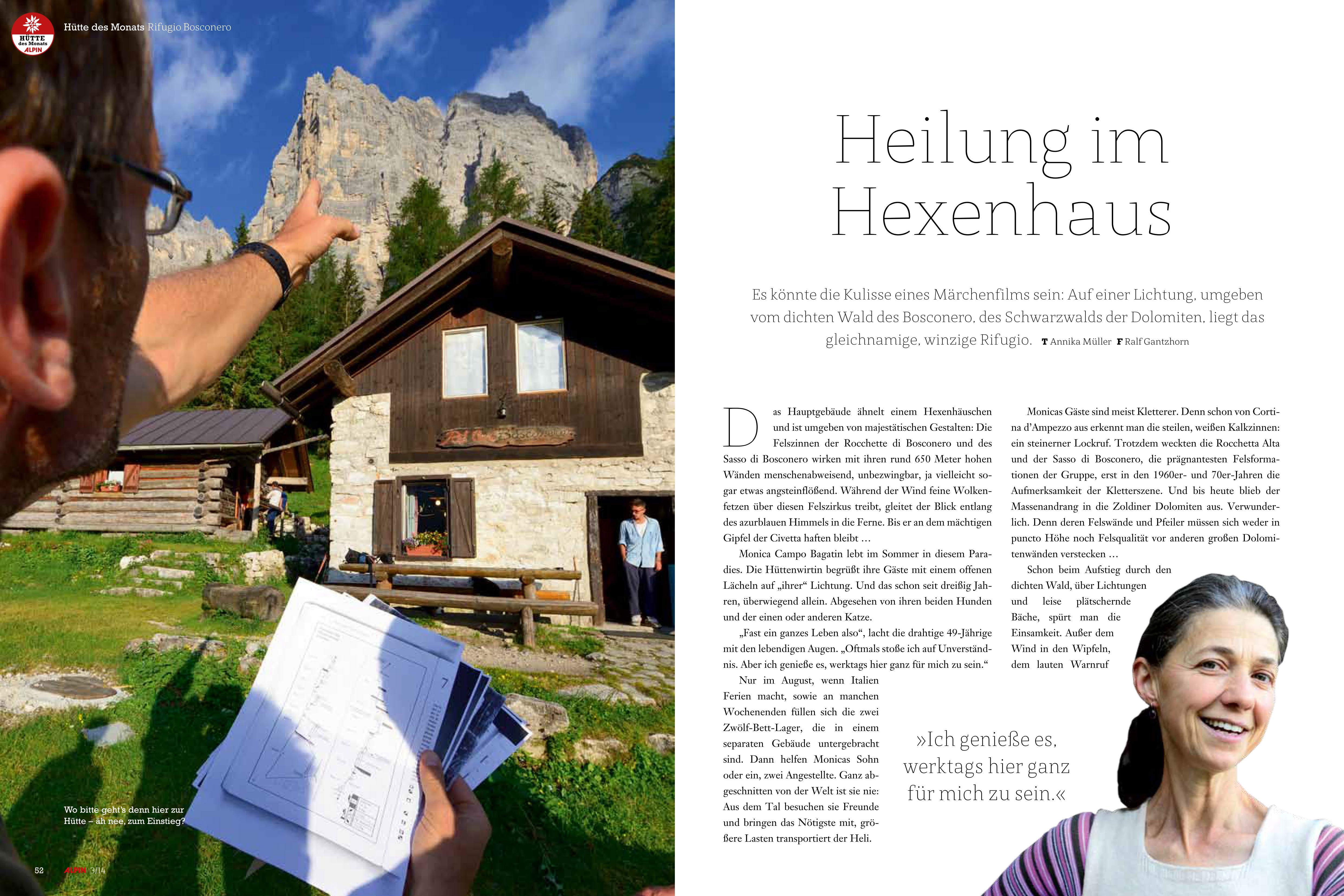 “Heilung im Hexenhaus” – Bosconero Hütte, erschienen in Alpin 3, 2014