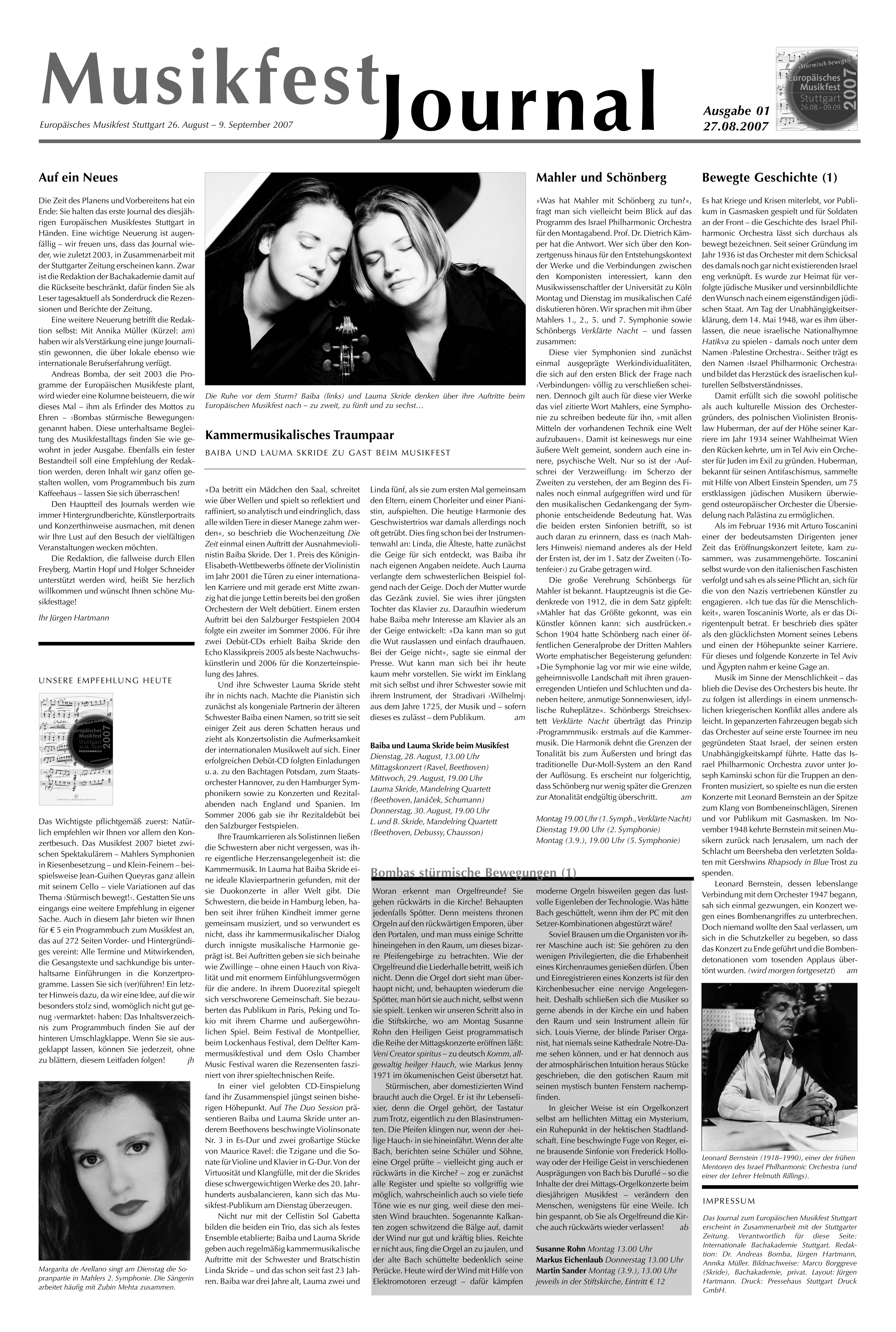 MusikfestJournal – Magazin zum „Europäischen Musikfest Stuttgart“ 2007