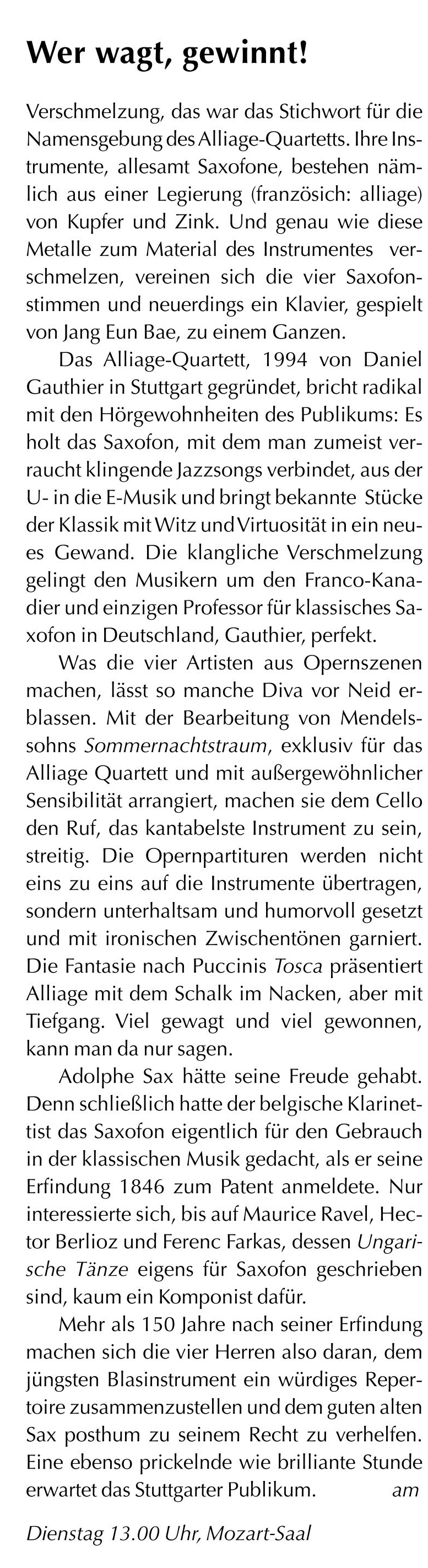 „Portrait Alliage Quartett“, erschienen in MusikfestJournal Ausgabe 7, 3.9.2007