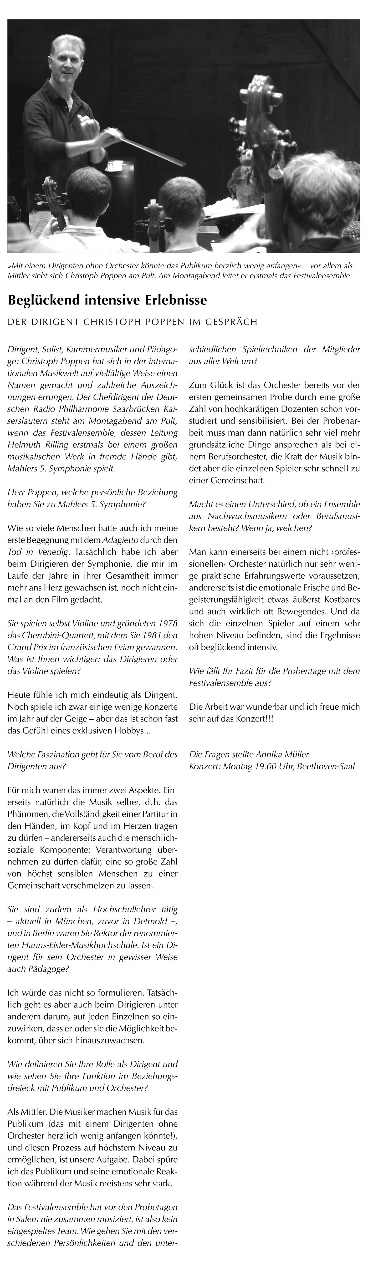 „Beglückend intensive Erlebnisse“ – Der Dirigent Christoph Poppen im Gespräch, erschienen in MusikfestJournal Ausgabe 7, 3.9.2007