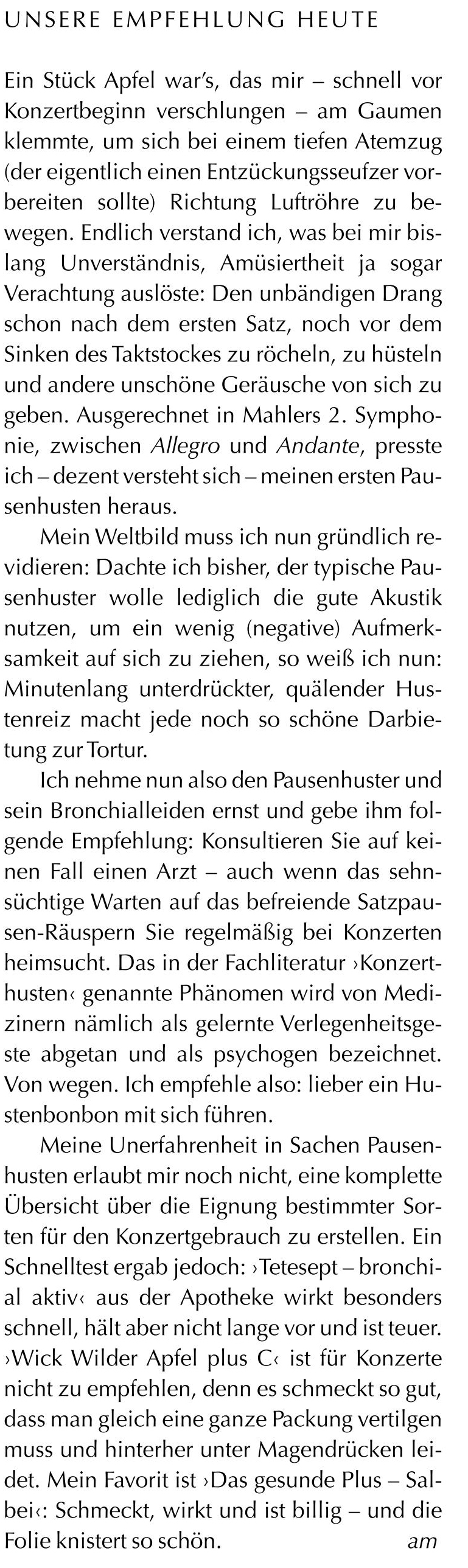 Glosse „Pausenhuster“, erschienen in MusikfestJournal Ausgabe 4, 30.8.2007