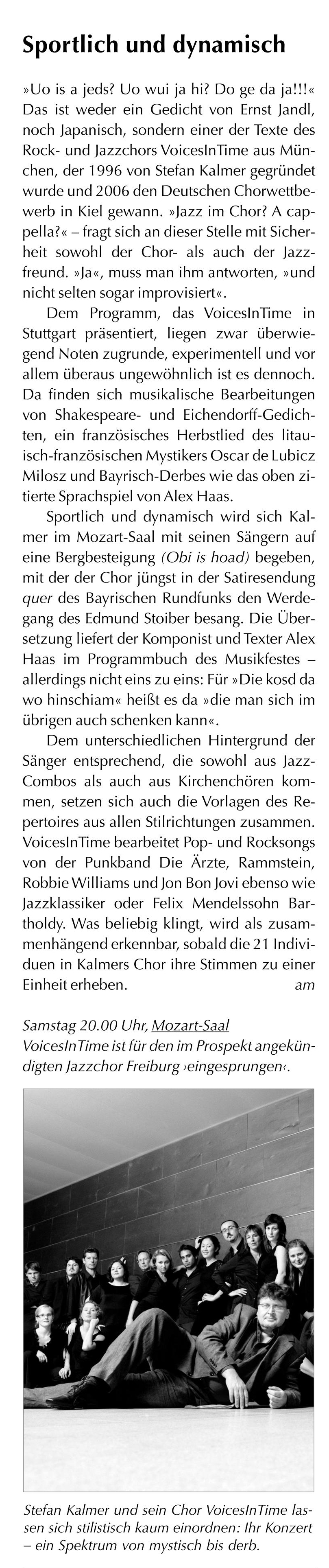 „Portrait Jazzchor Freiburg“, erschienen in MusikfestJournal Ausgabe 5, 31.8.2007