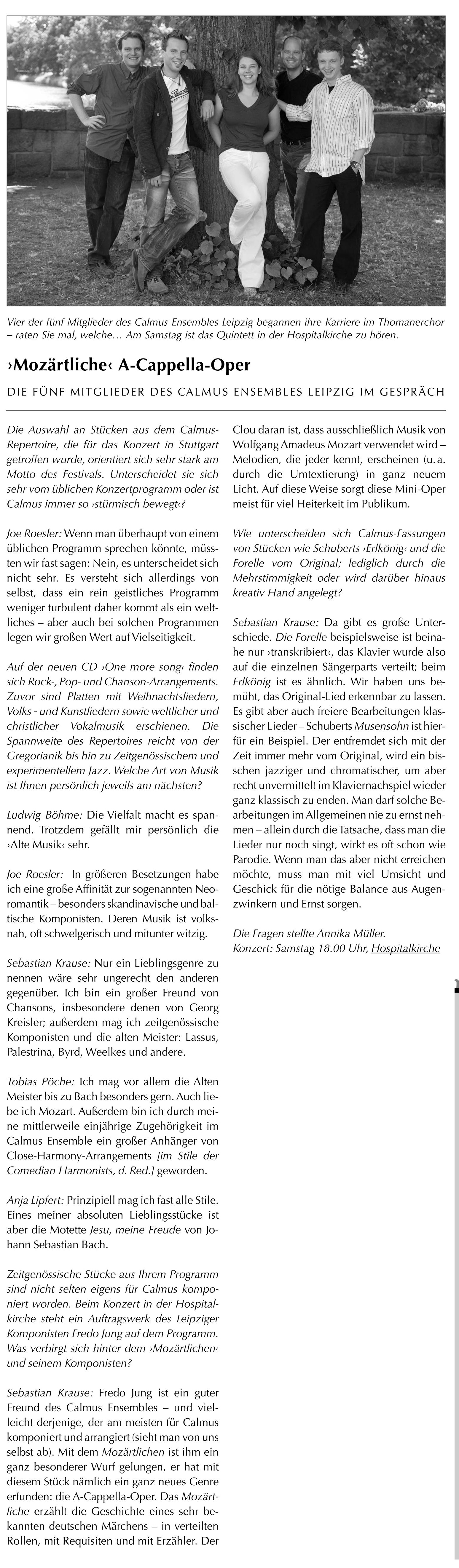 „Interview Kalmus Ensemble Leipzig“, erschienen in MusikfestJournal Ausgabe 5, 31.8.2007