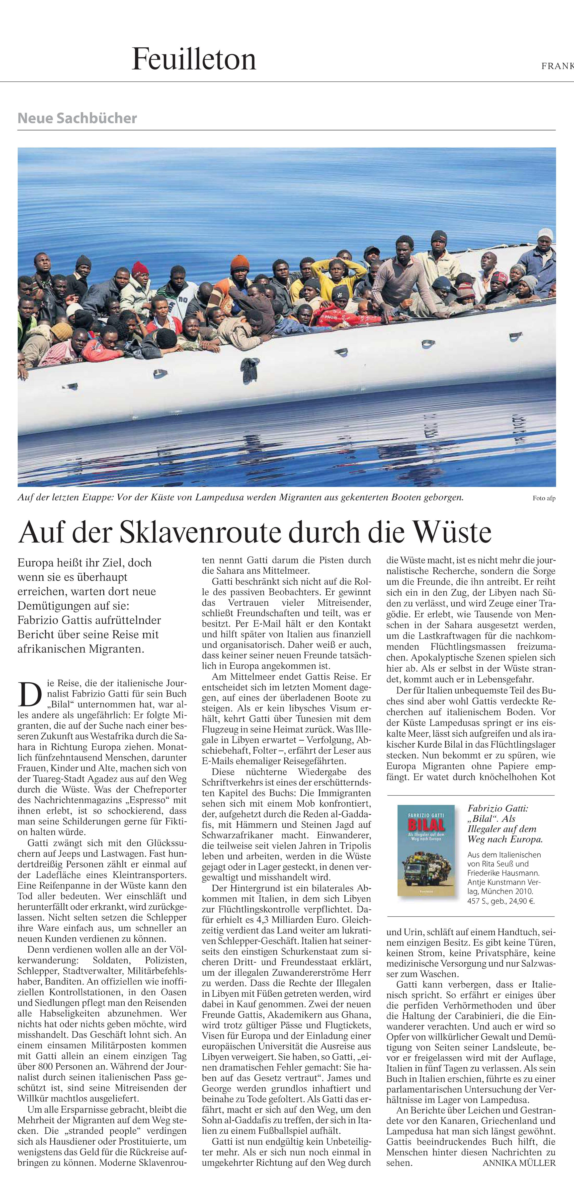 Sachbuchkritik Fabrizzio Gatti: Bilal, erschienen im FAZ Feuilleton am 29.12.2010