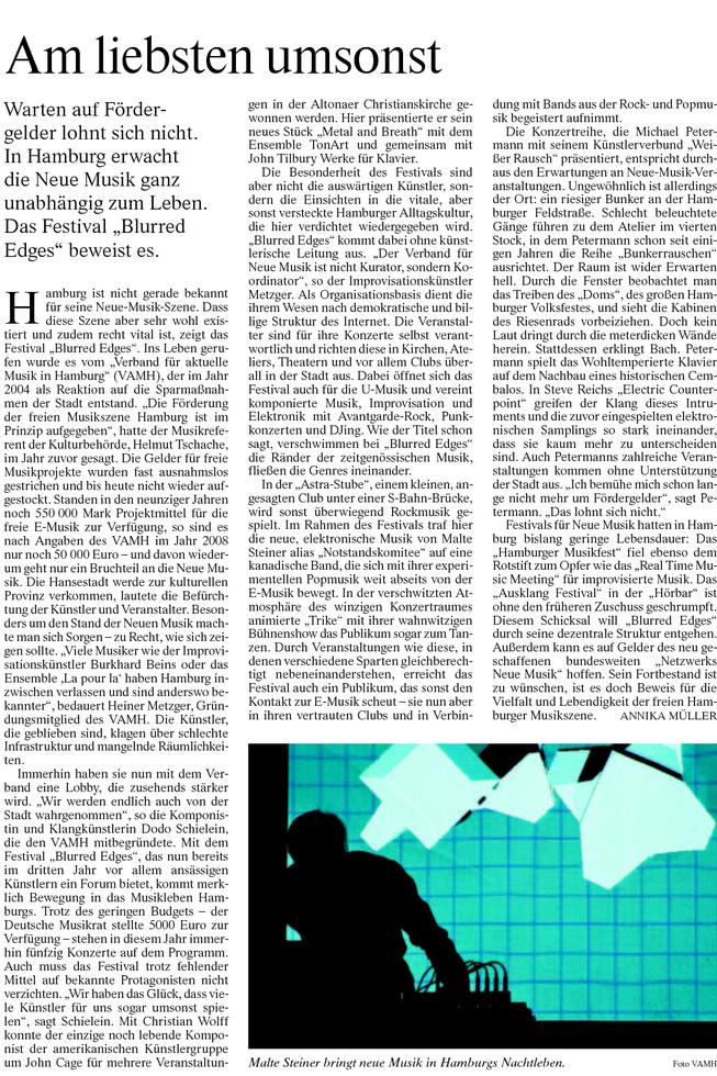 Festivalbericht: Blurred Edges, Hamburg erschienen in FAZ, Feuilleton 24.4.2008: Artikel als PDF-Download:Fesivalkritik blurred edge 24.4.2008