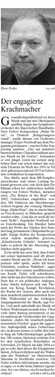 Musik-Portrait Dror Feiler: „Engagierter Krachmacher“ erschienen in FAZ, Feuilleton 8.4.2008: Artikel als PDF-Download:FAZ Portrait Dror Feiler 8.4.2008