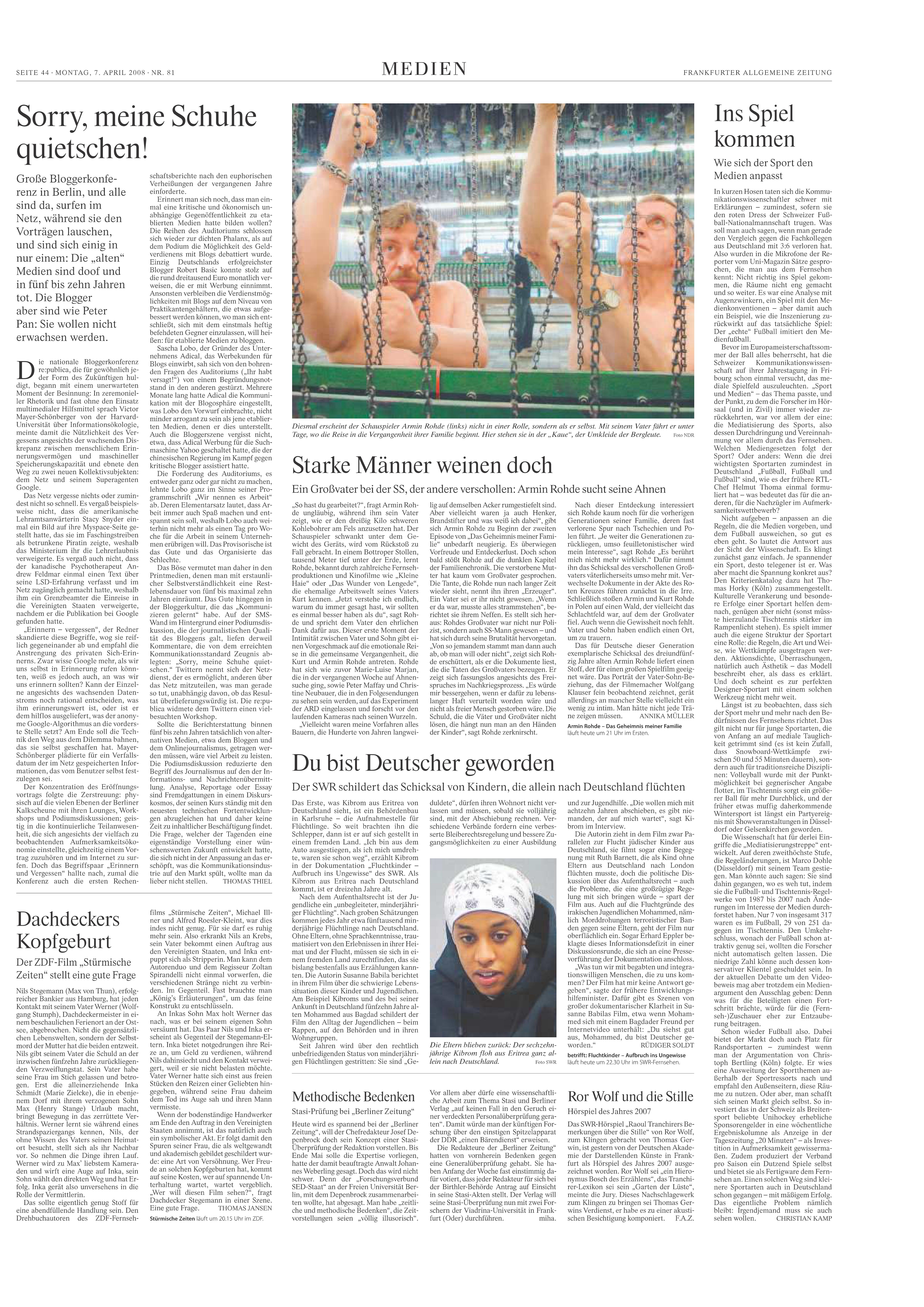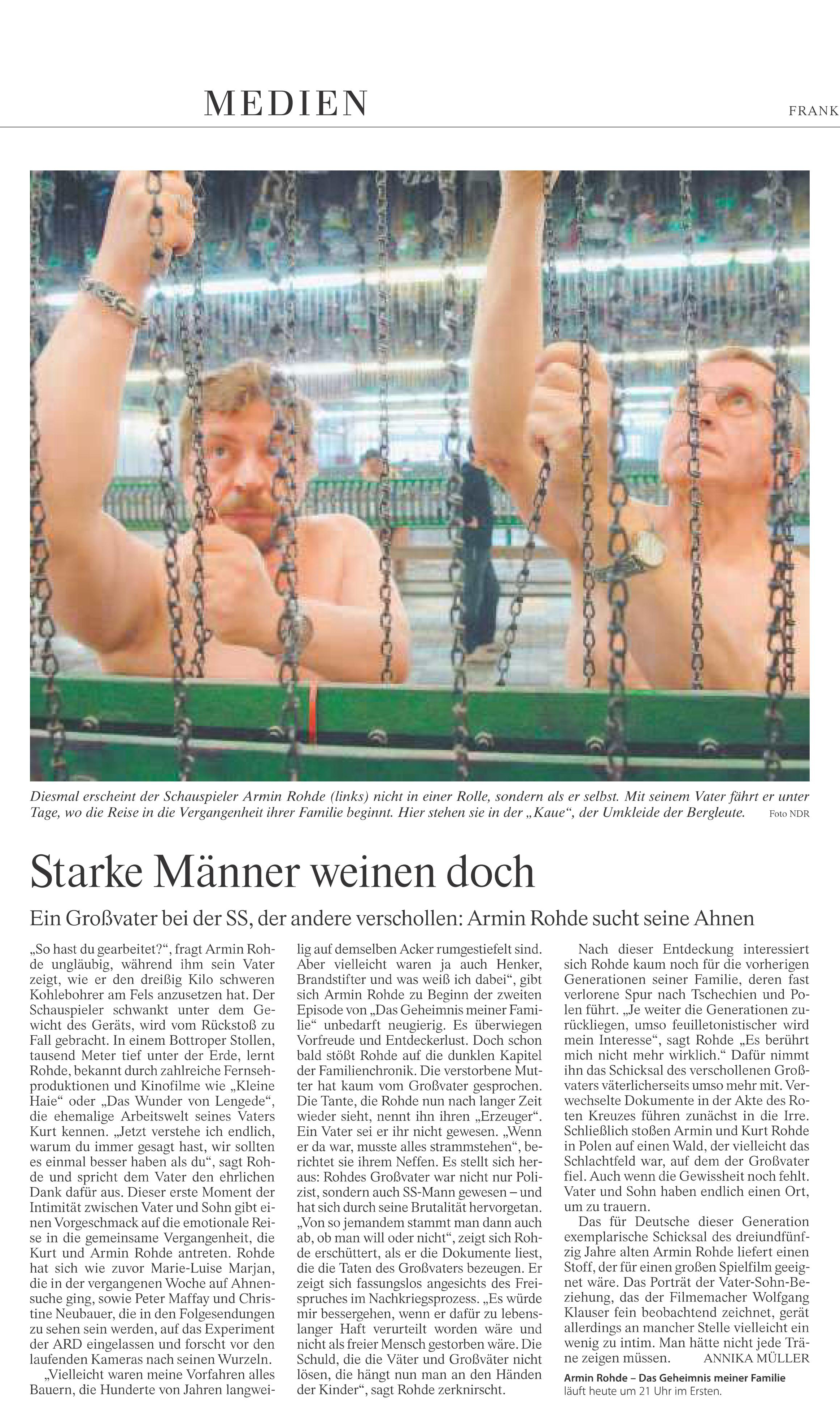 Fernsehkritik Armin Rohde – Das Geheimnis meiner Familie, erschienen in FAZ, Feuilleton/Medien am 7.4.2008. Artikel als PDF-Download:FAZ Fernsehkritik Armin Rohde 7.4.2008