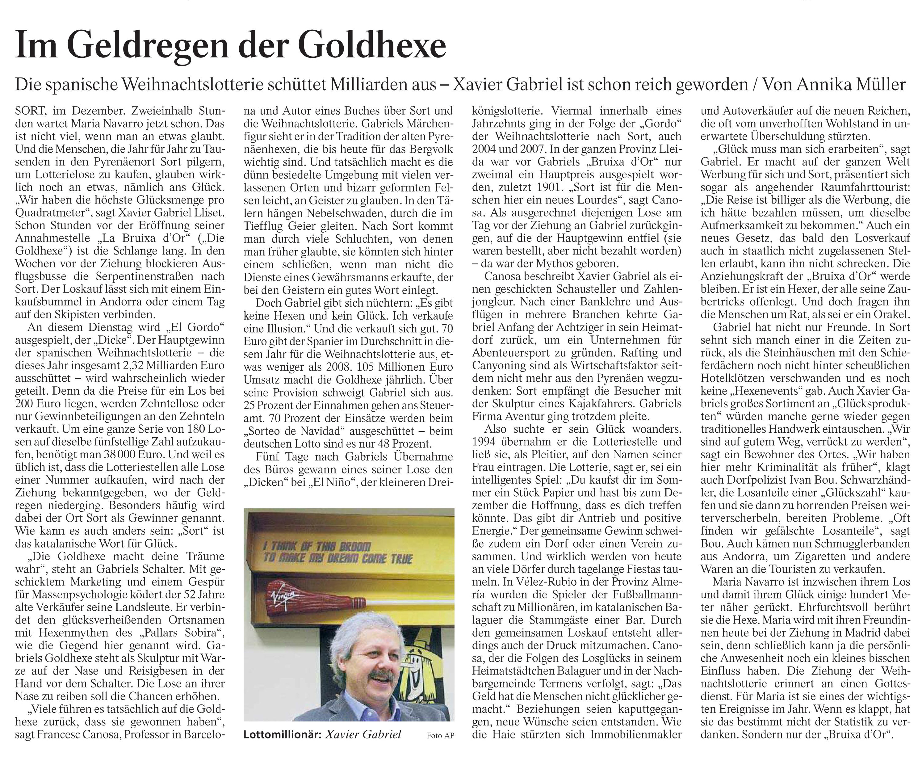 Weihnachtslotterie in Spanien: Im Geldregen der Goldhexe, erschienen in FAZ, Deutschland und die Welt, am 22.12. 2009 Artikel als PDF-Download: FAZ Geldregen der Goldhexe