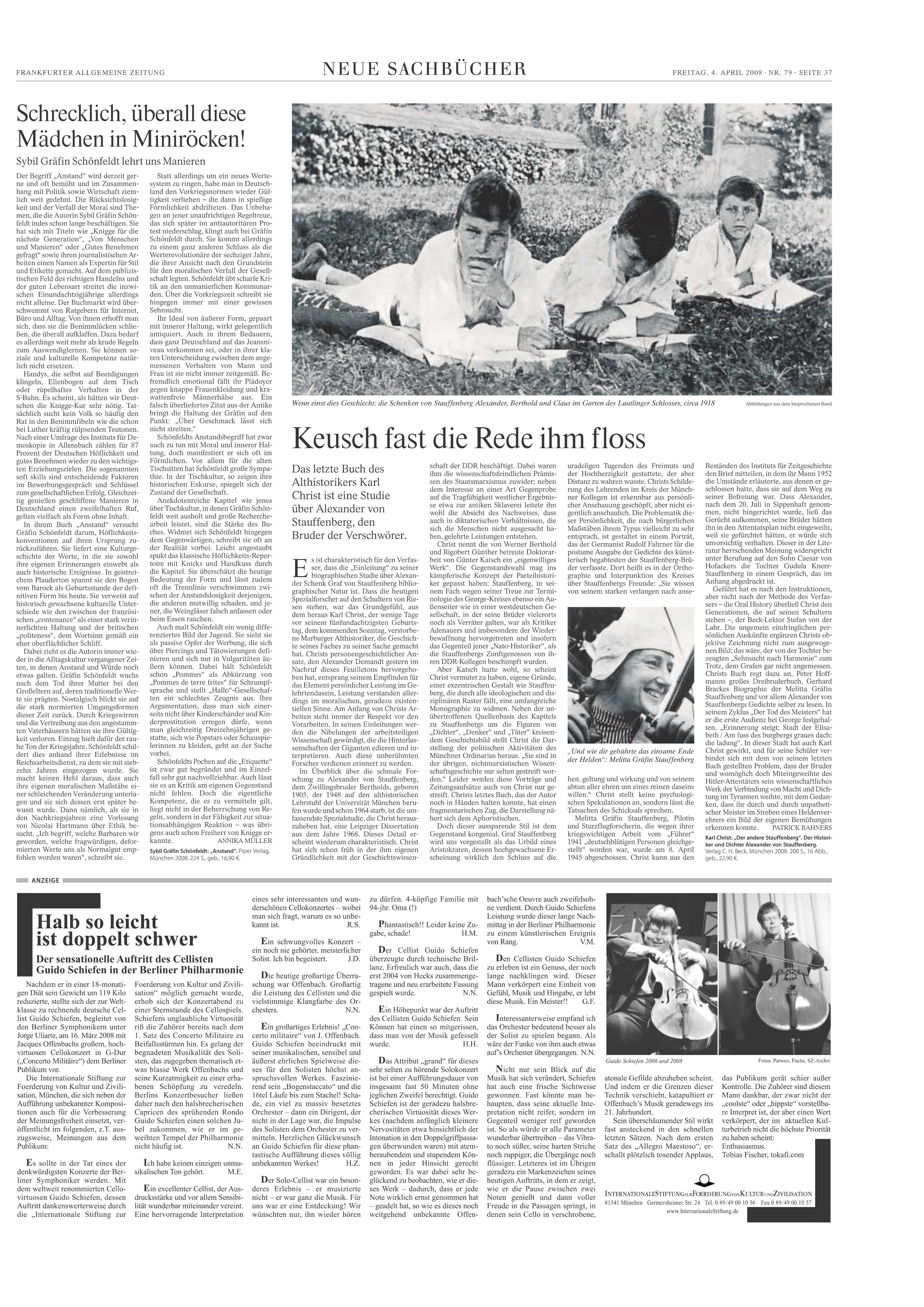 Sachbuchkritik Sybil Gräfin Schönfeldt: Anstand erschienen in FAZ, Feuilleton/Medien am 4.4.2008. Artikel als PDF-Download:FAZ Gräfin Schönfeldt 4.4.2008