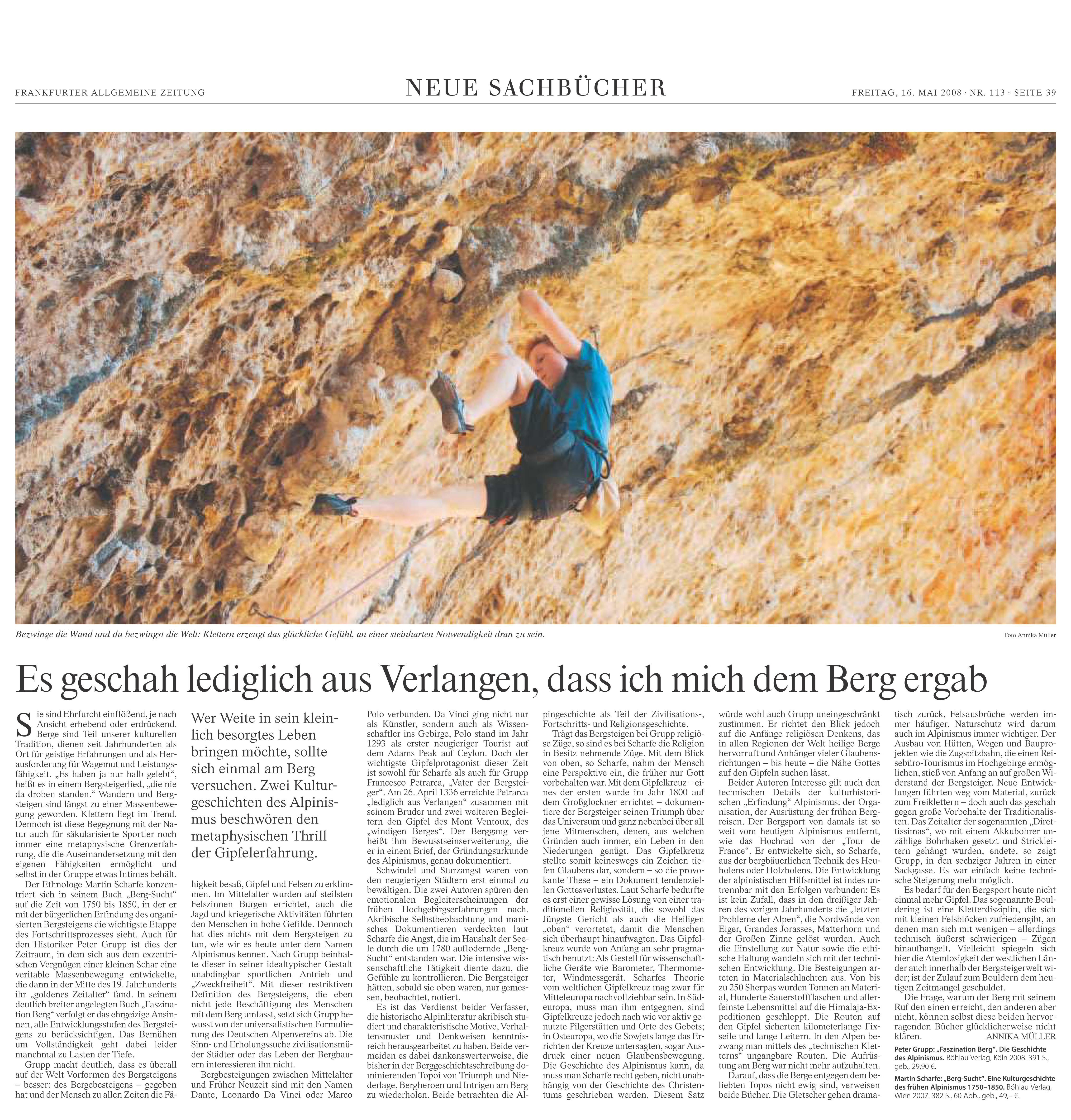 Sachbuchkritik Peter Grupp: Faszination Berg und Martin Scharfe: Berg-Sucht, erschienen in FAZ Feuilleton am 16.5.2008