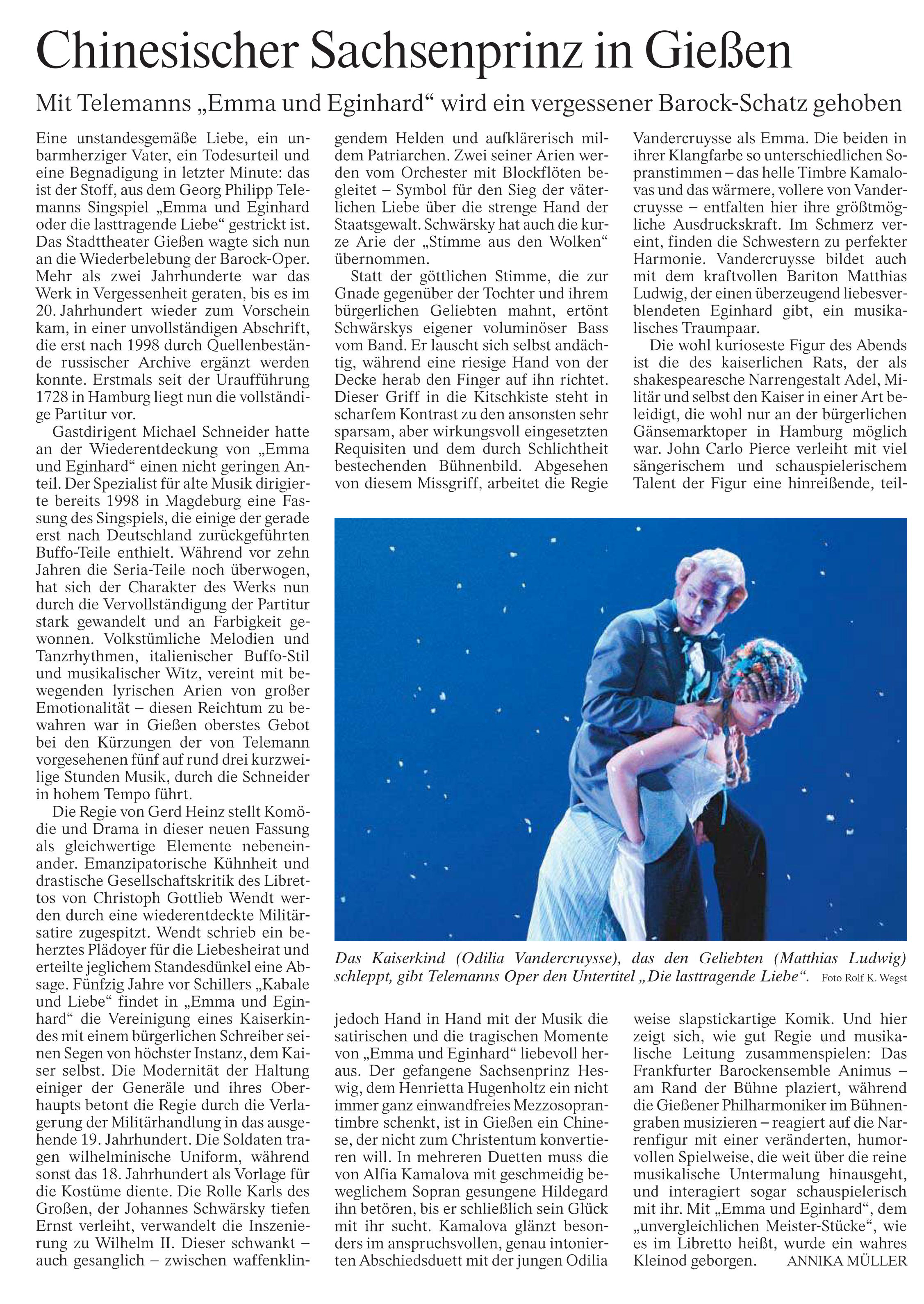 Opernkritik „Emma und Eginhard“ in Giesen, erschienen in FAZ, Feuilleton 13.3.2008: Artikel als PDF-Download:FAZ Musik Emma und Eginhard 13.3.2008
