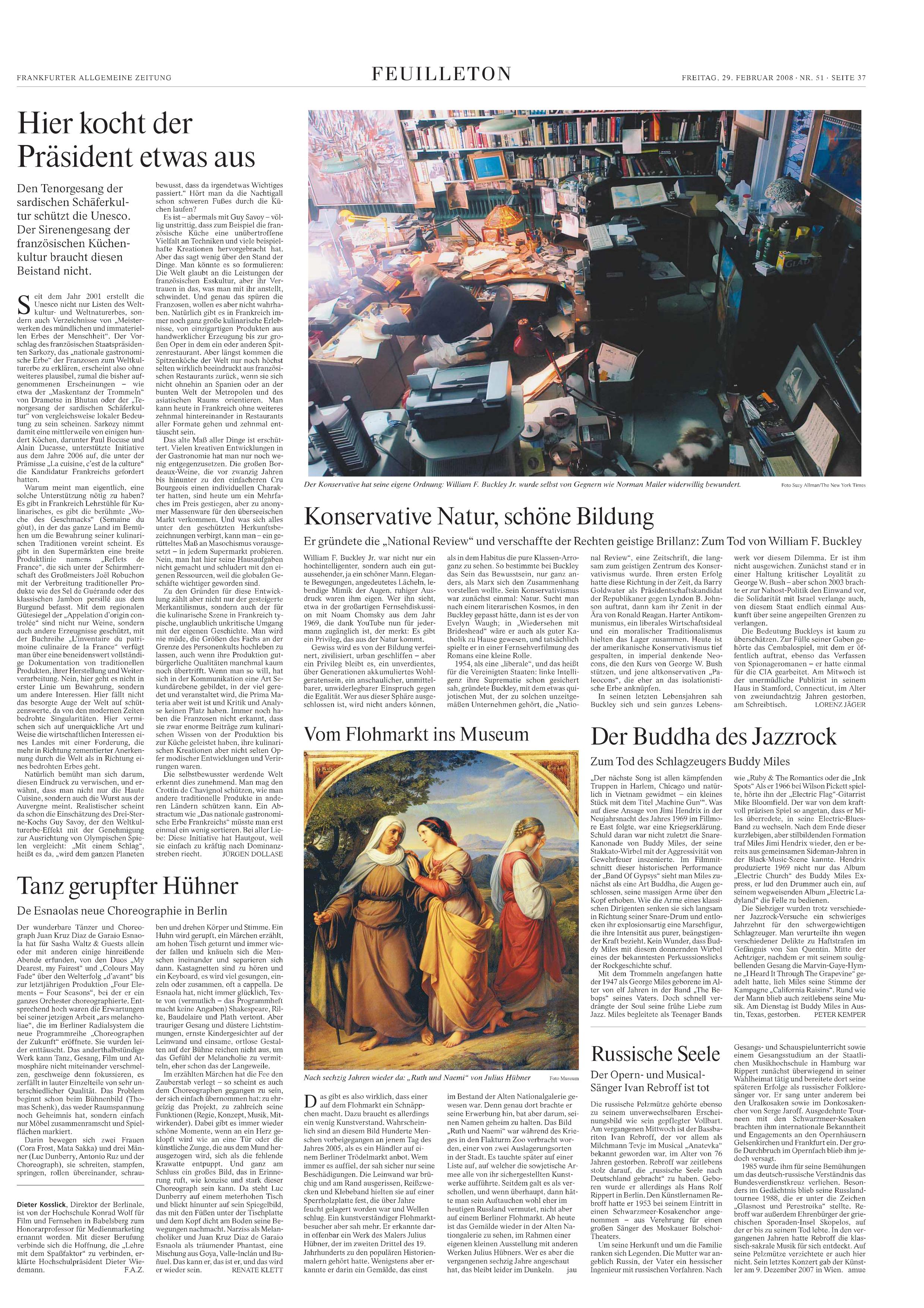Klassische Musik: „Webers Jubelmesse“, erschienen in FAZ, Feuilleton 11.3.2008. Artikel als PDF-Download:FAZ Musik Webers Jubelmesse 11.3.2008