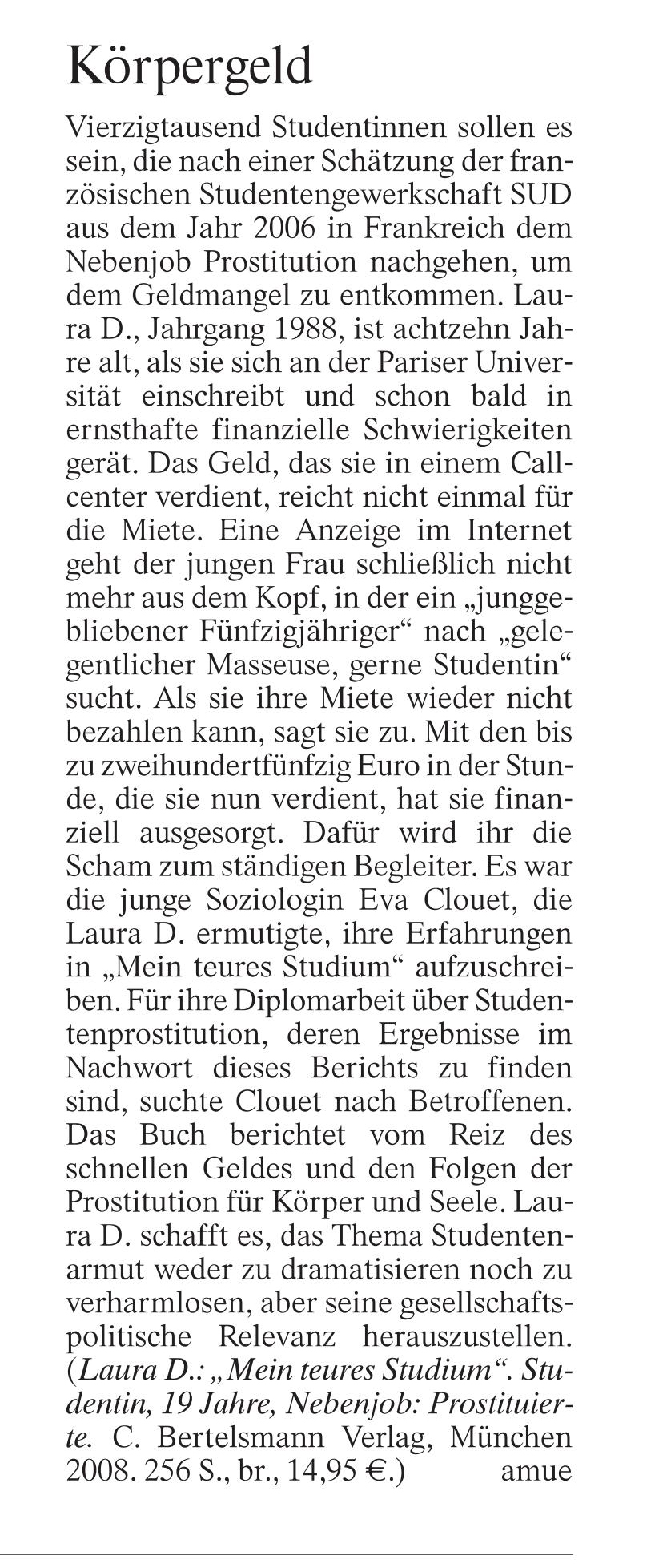 Sachbuchkritik Laura D:Mein teures Studium, erschienen in FAZ Feuilleton am 5.11.2008