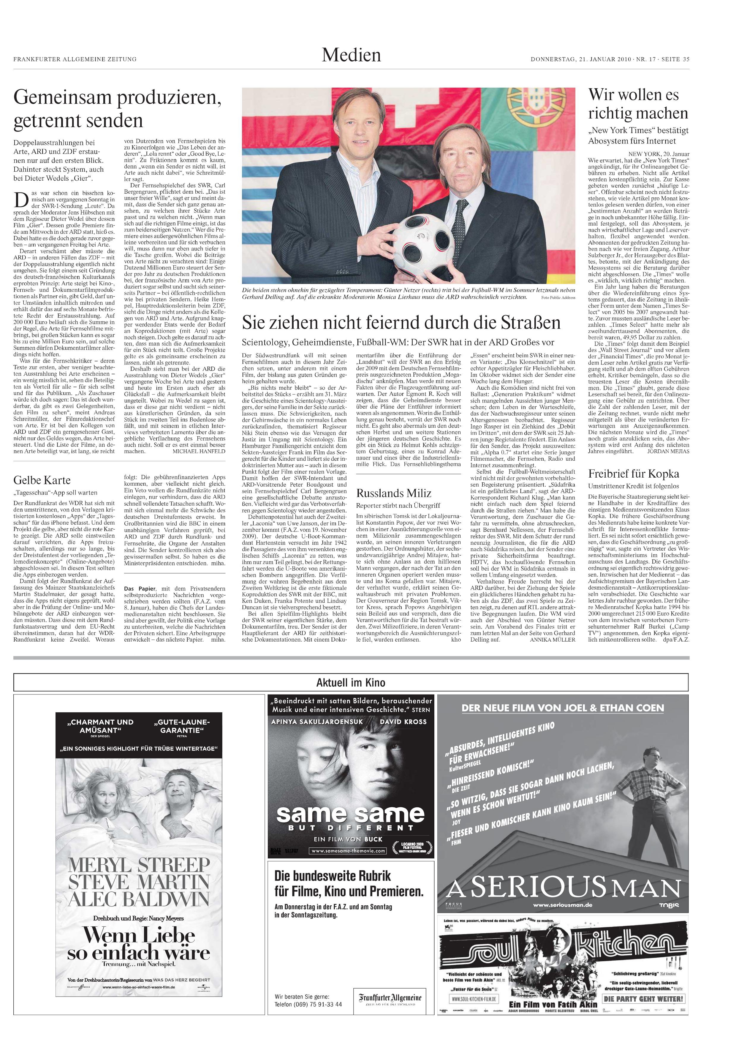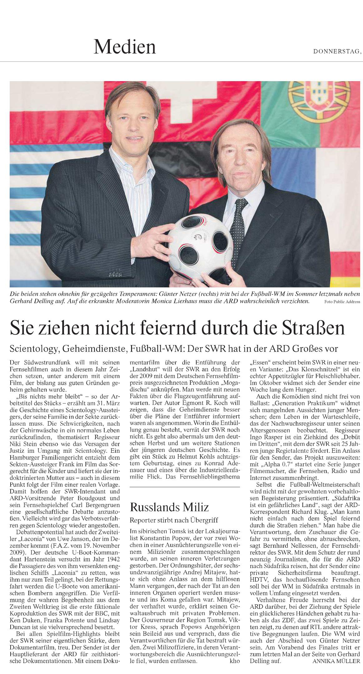 Medienbericht SWR-Jahreskonferenz erschienen im FAZ Feuilleton/Medien am 21.Januar 2010