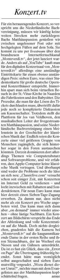 Glosse: „Konzert.tv“ erschienen in FAZ, Feuilleton/Medien am 7.4.2008. Artikel als PDF-Download: Konzertglosse 7.4.2008
