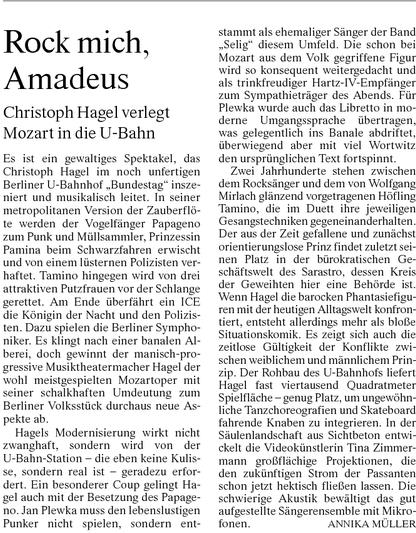 Konzertkritik Mozart in der UBahn, erschienen in in FAZ, Feuilleton 29.4.2008: Artikel als PDF-Download: Konzertkritik Mozart in de u-bahn 29.4.2008