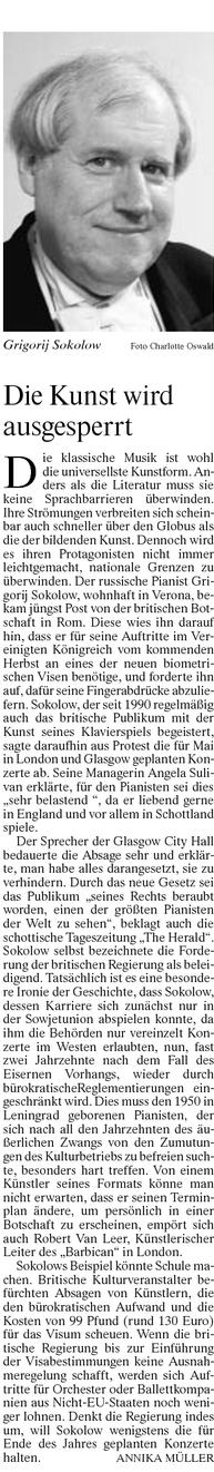 Musik-Portrait Grigorij Sokolow: „Die Musik wird ausgesperrt“ erschienen in FAZ, Feuilleton 22.4.2008: Artikel als PDF-Download FAZ Portrait Grigorij Sokolow 22.4.2008