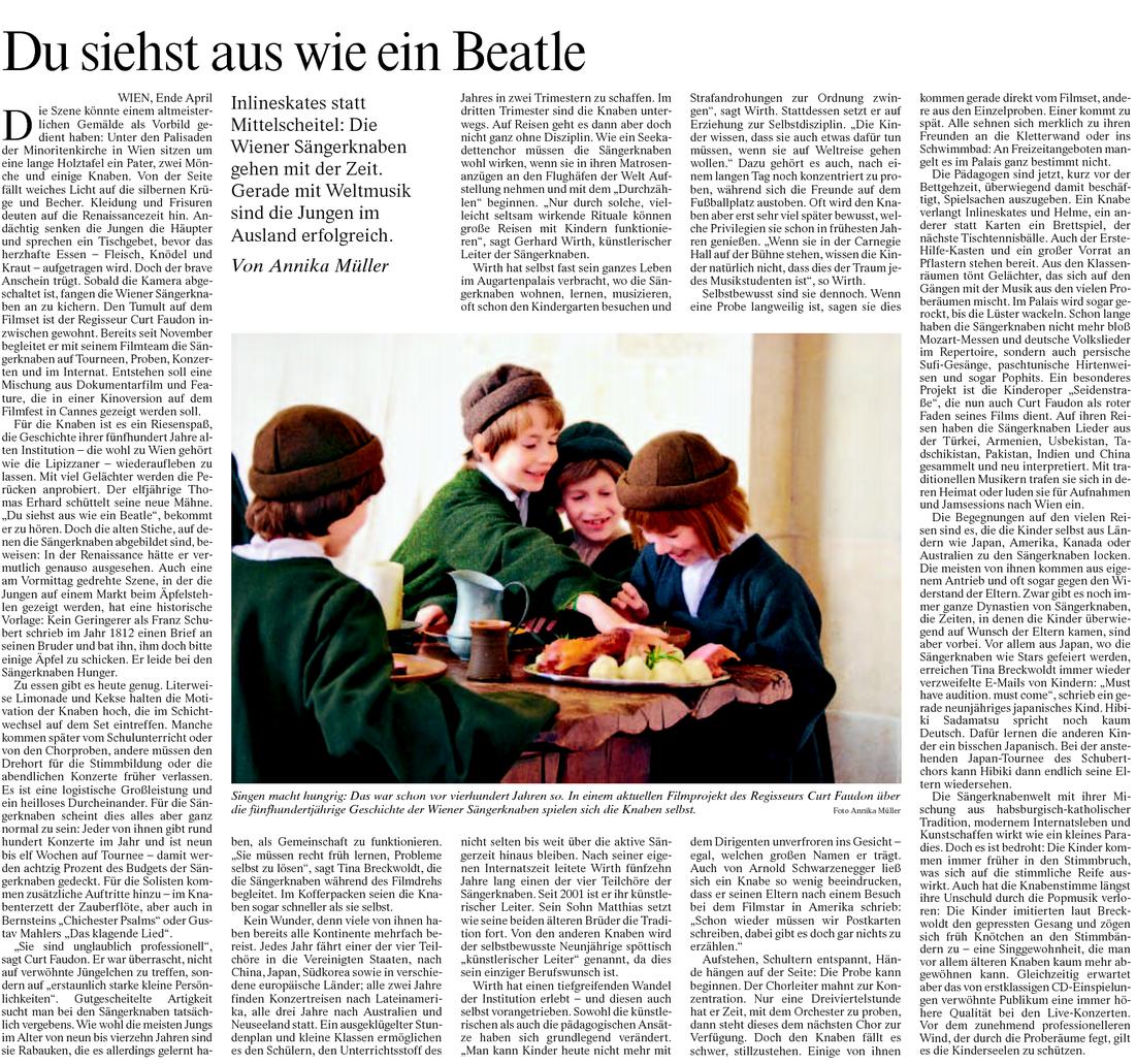 Kultur-Reportage: Wiener Sängerknaben, erschienen in FAZ Feuilleton, 30.4. 2008.