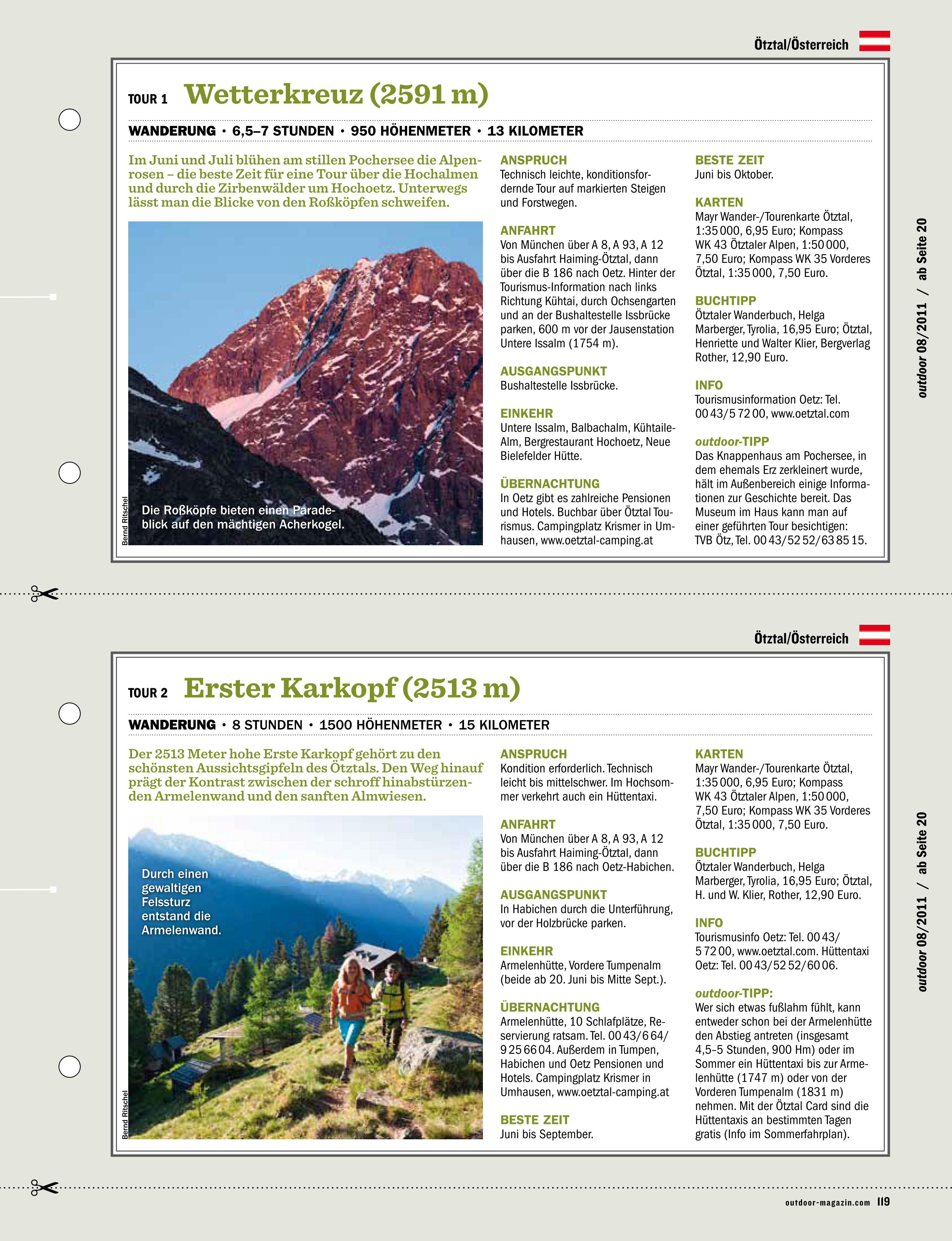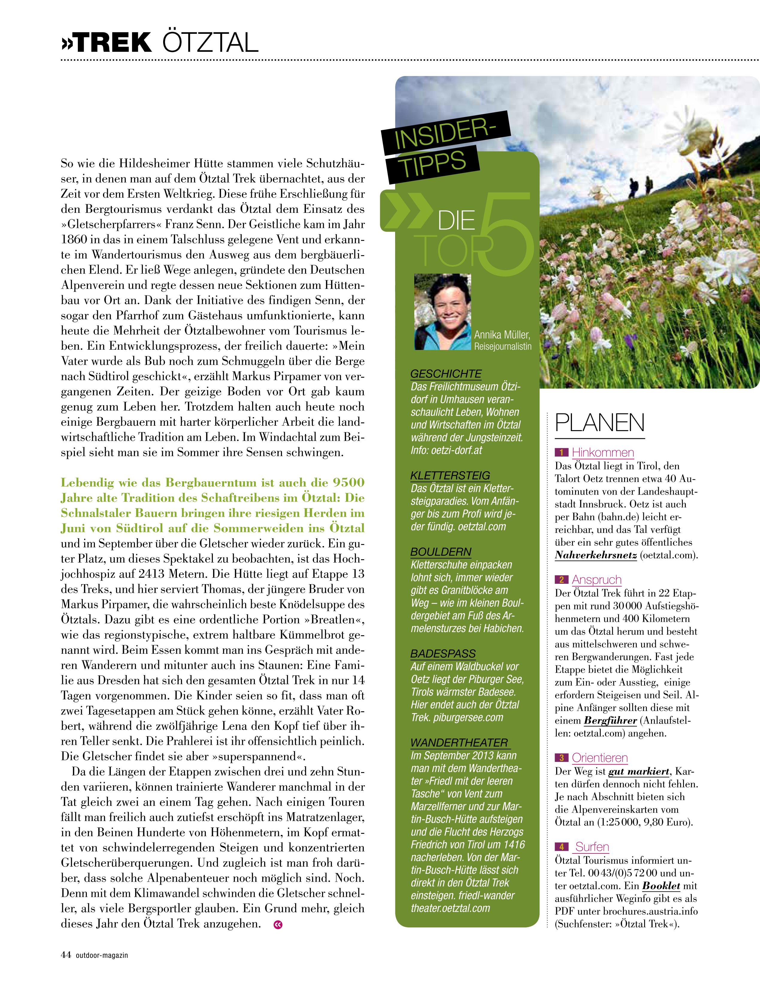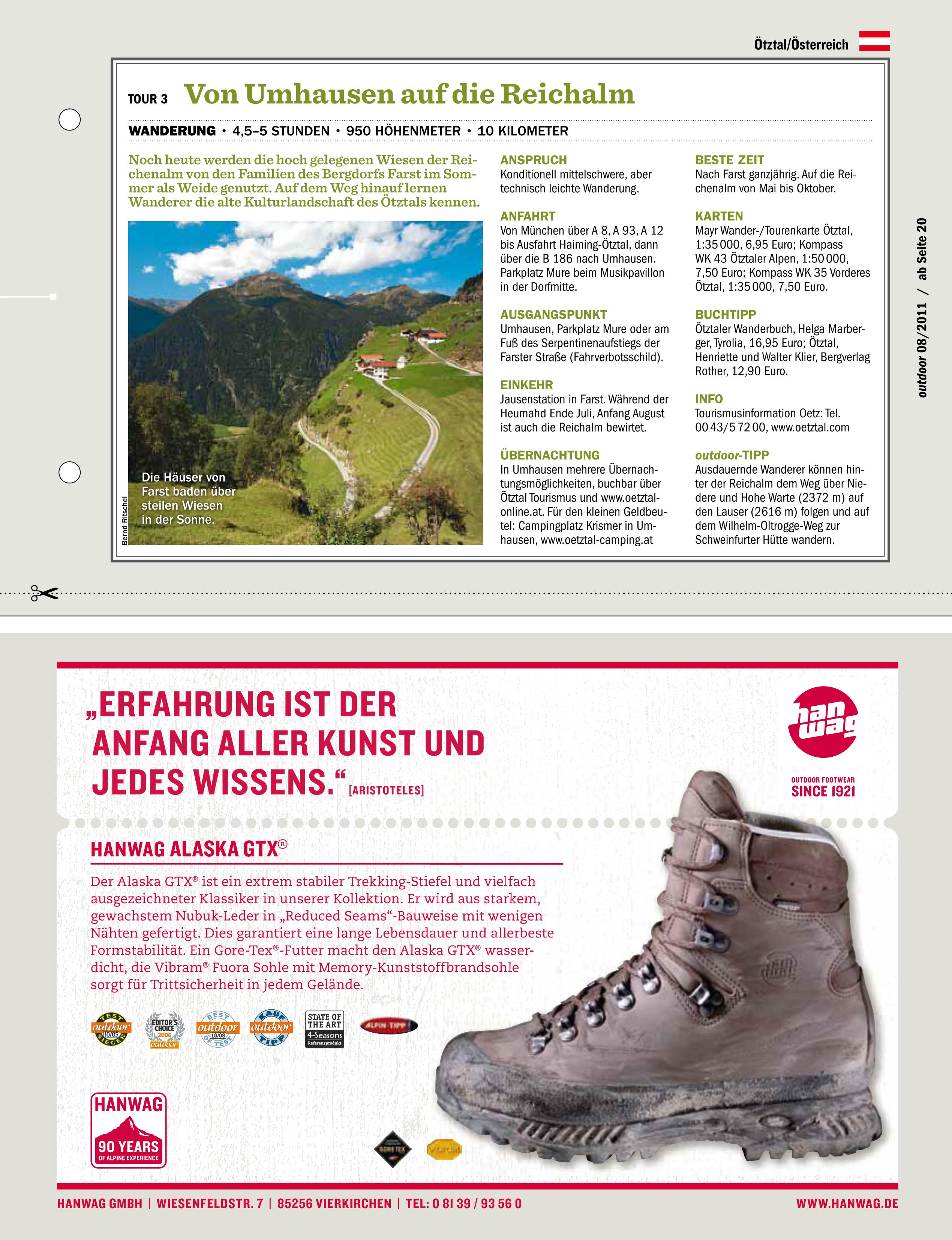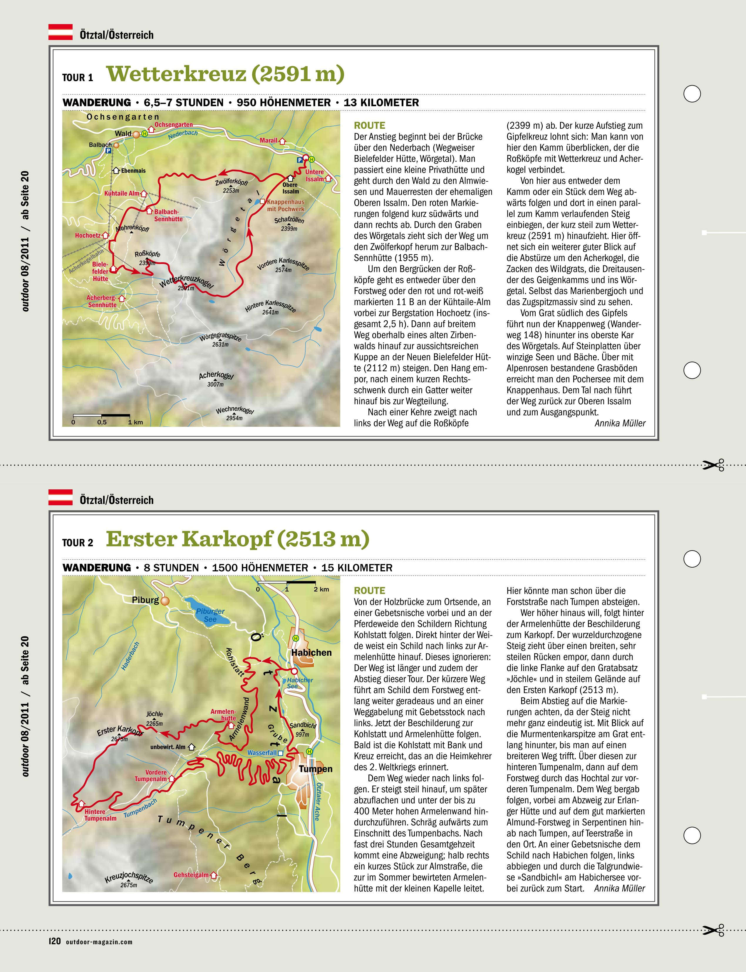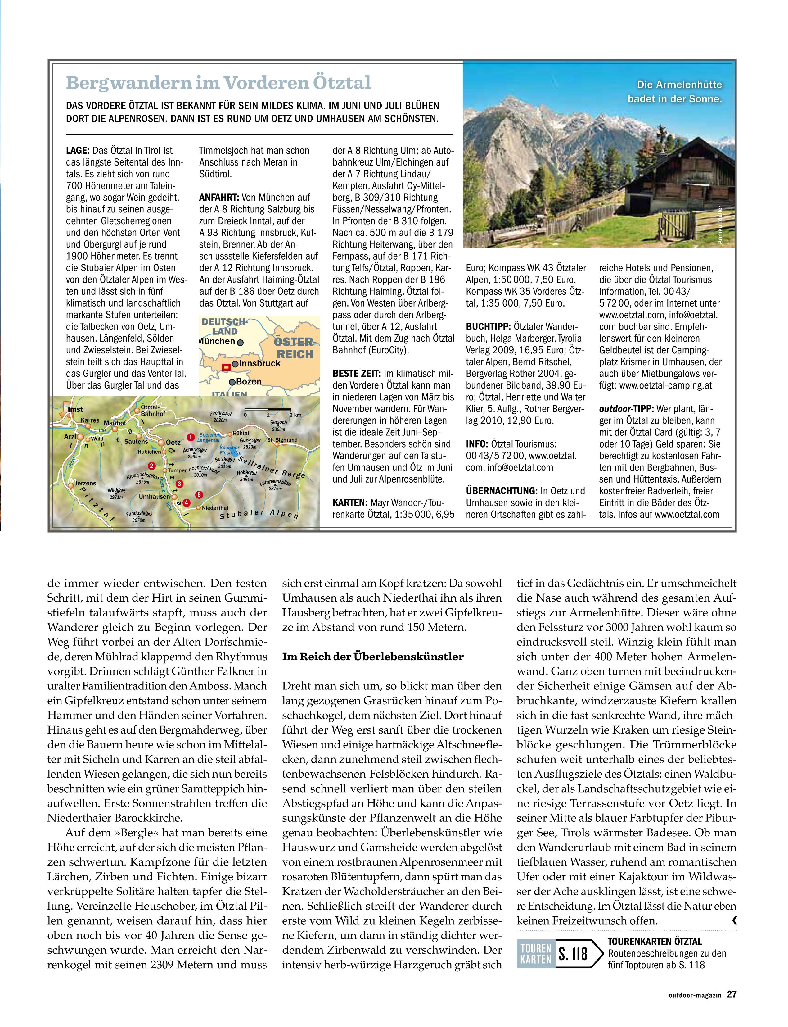„Wandern im Ötztal: Reise in die Vergangenheit“, erschienen in „Outdoor“, Juli 2011. Artikel als PDF-Download: OD_0811_020_027_+ûtztalguide_5b