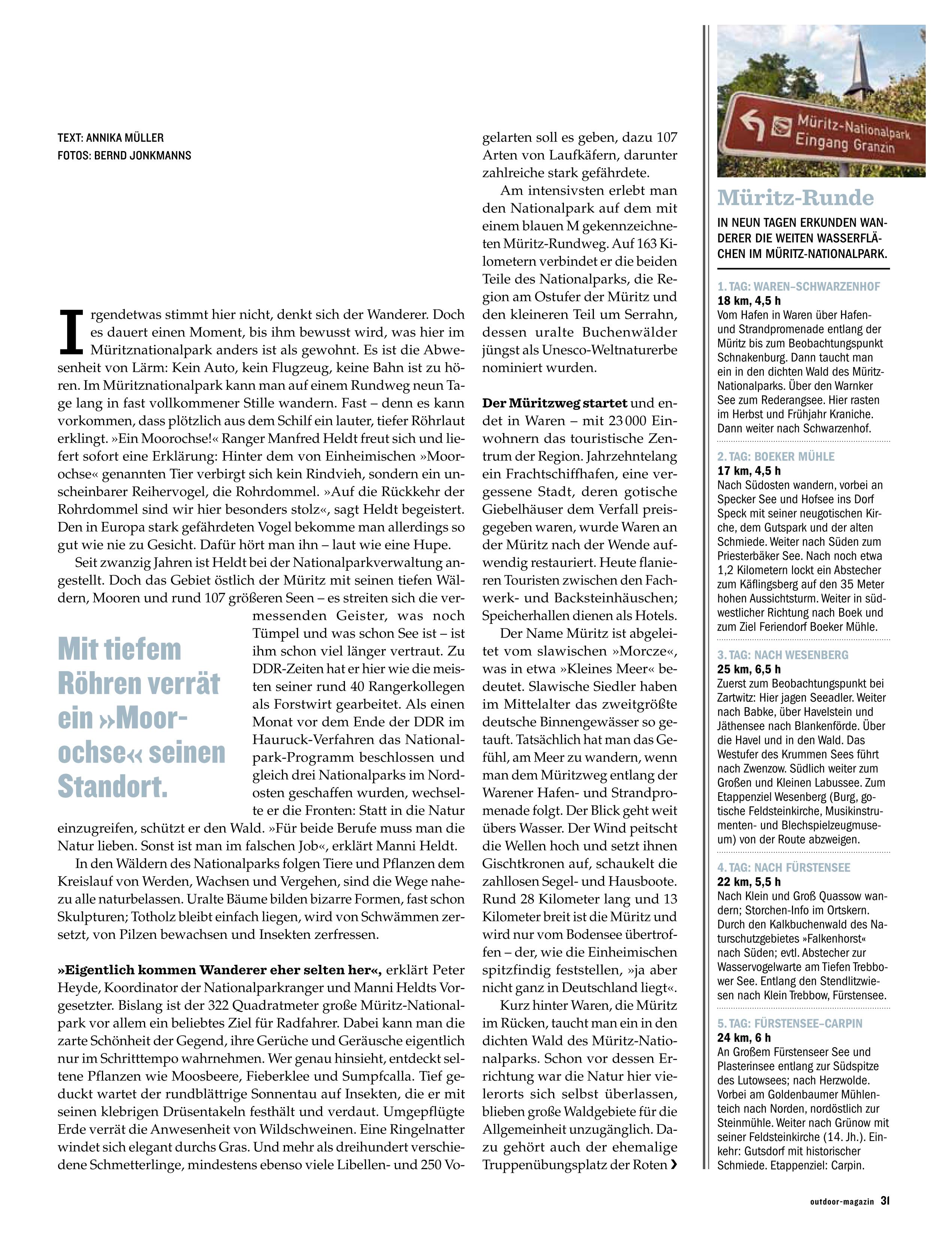 „Ganz im Stillen – Wandern im Müritz-Nationalpark“, erschienen in „Outdoor“, Juli 2011. Artikel als PDF-Download: Mueritz_BU