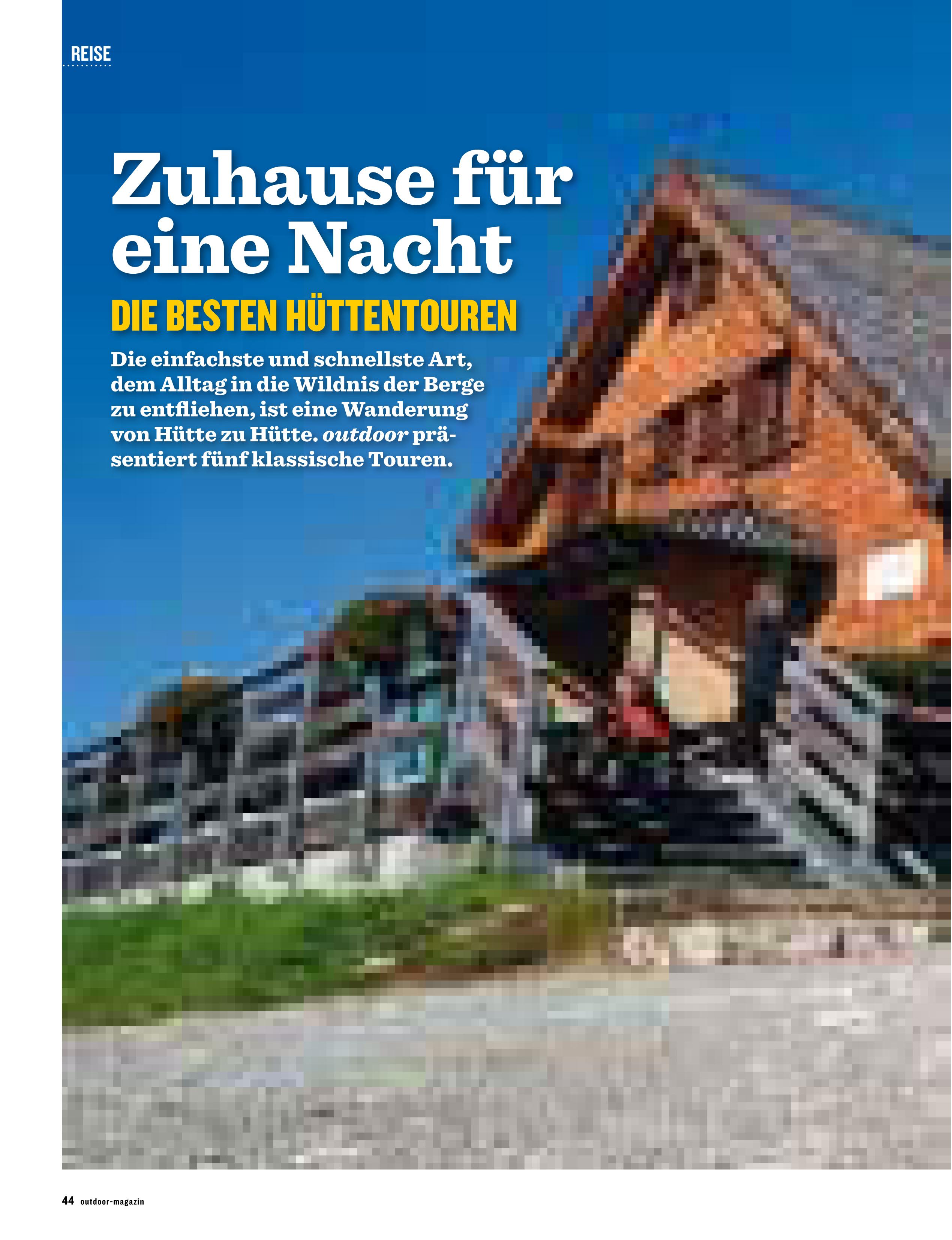 „Zu Hause für eine Nacht – Die besten Hüttentouren“, erschienen in „Outdoor“, Nr.9, September 2011. Download als PDF: OD_0911_044_050_Hüttentouren6 korr