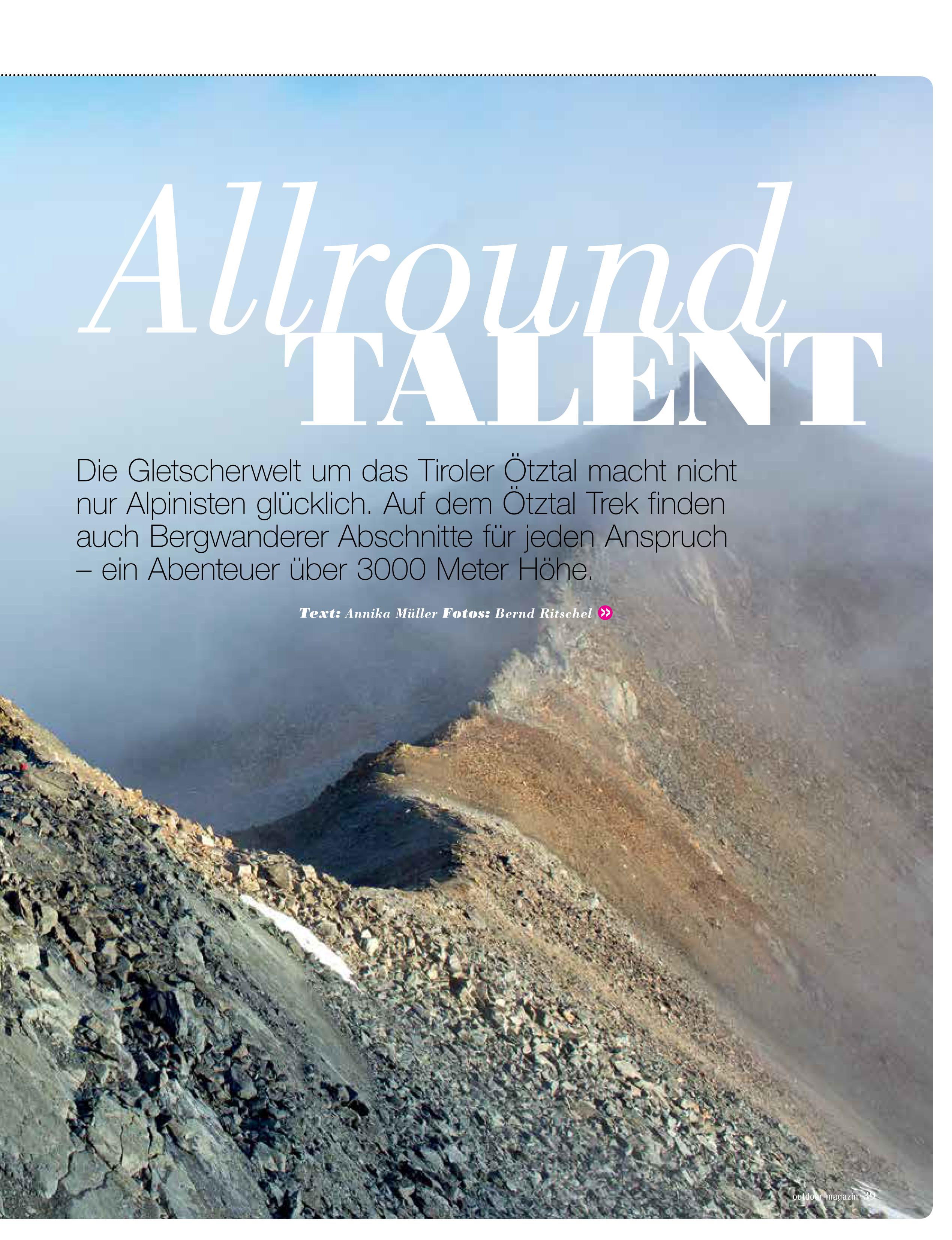 Allround Talent: Ötztaltrek, erschienen in Outdoor Magazin, 7/2013