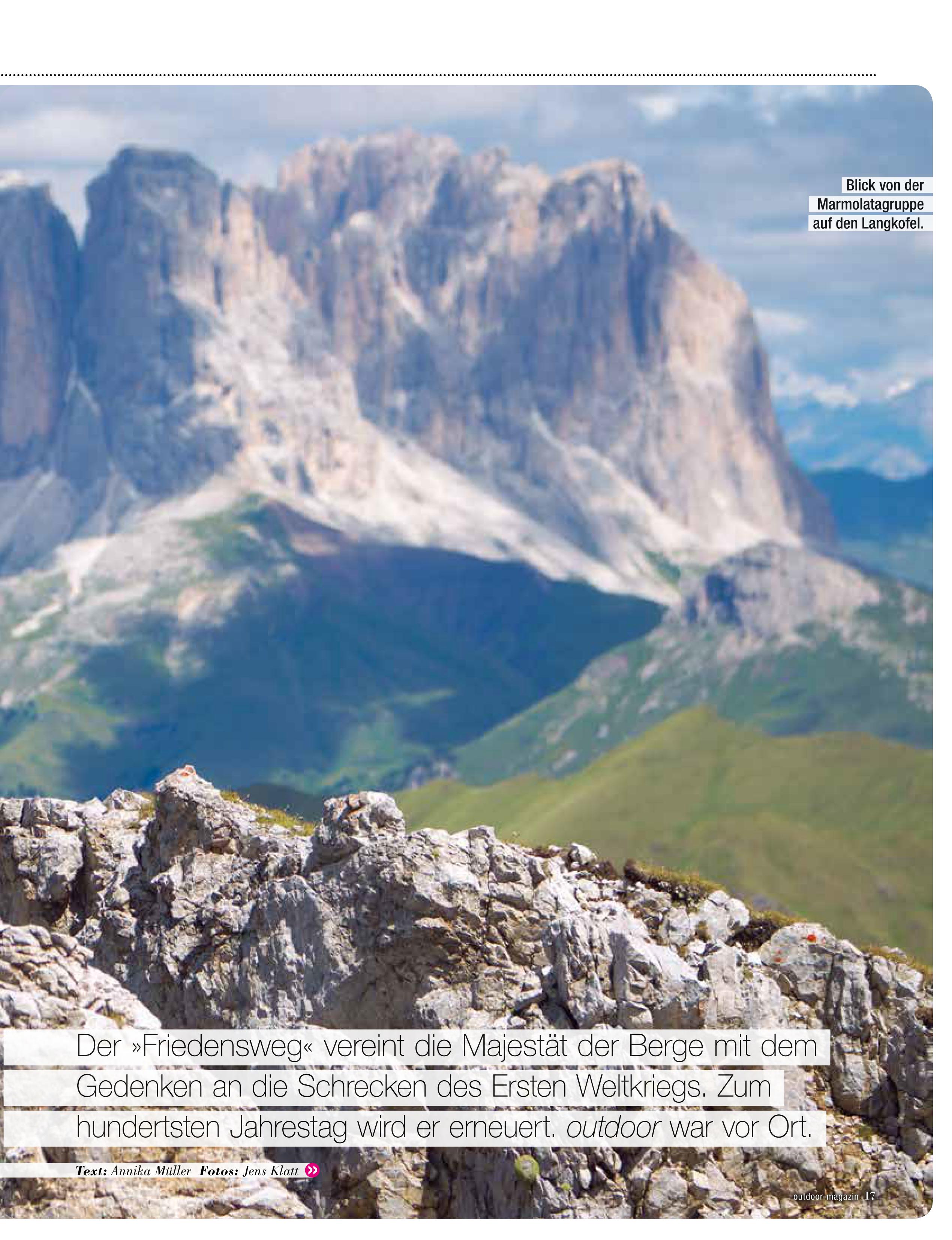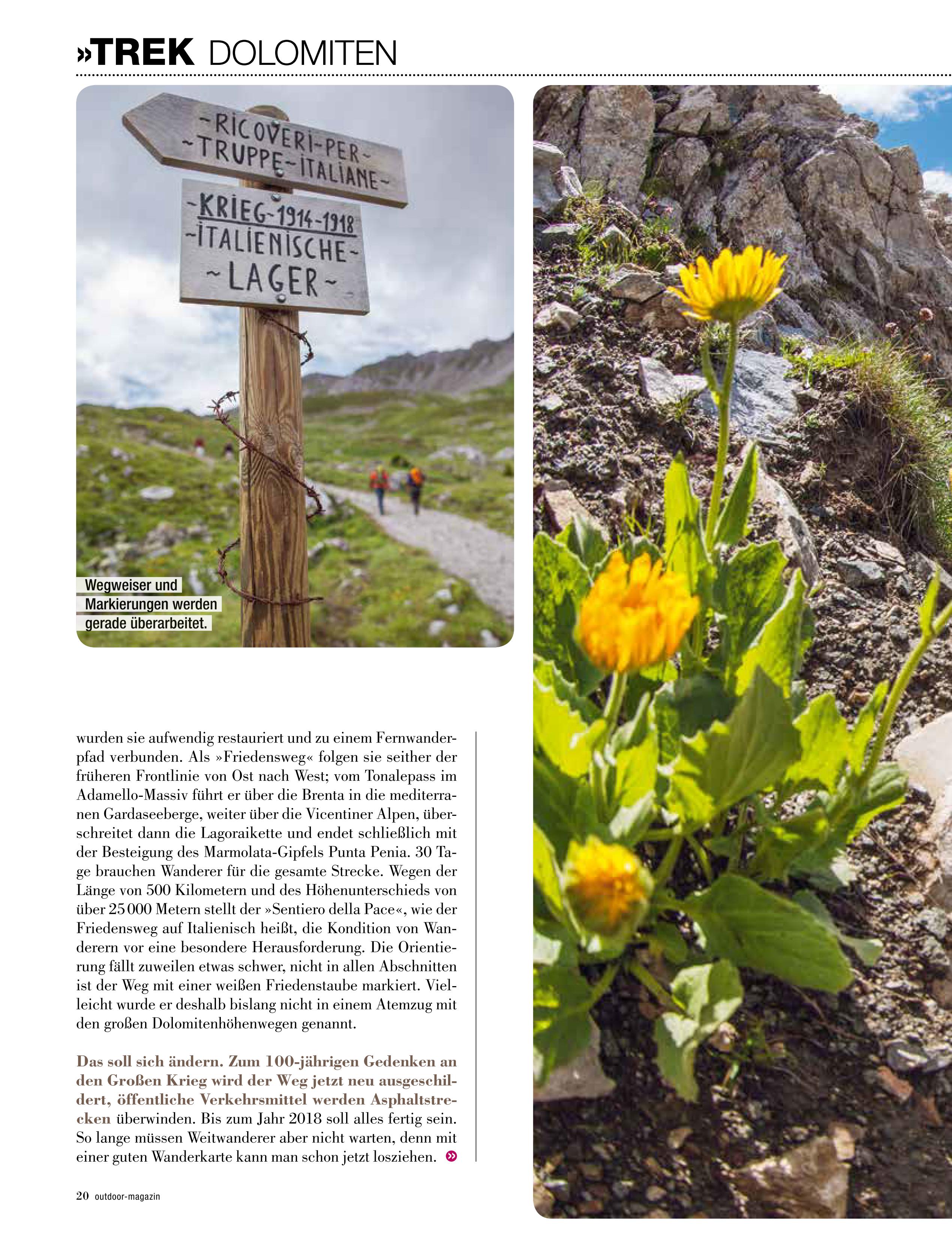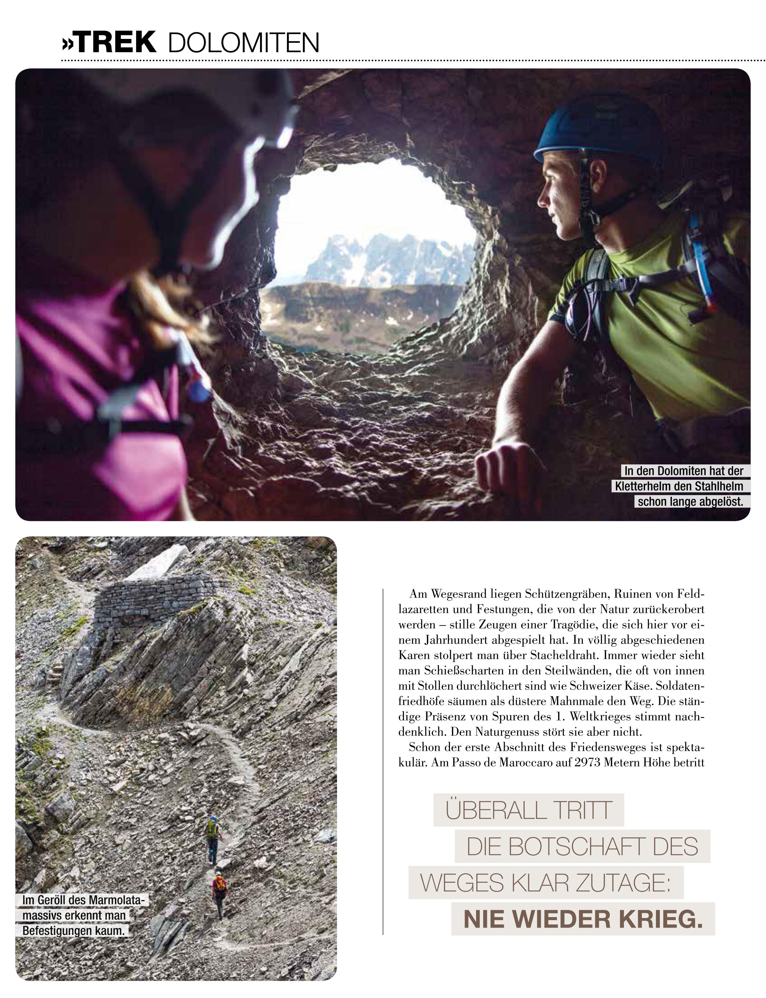 “Friedens Bewegung”- die Sentiero della Pace, erschienen in Outdoor 1, 2014