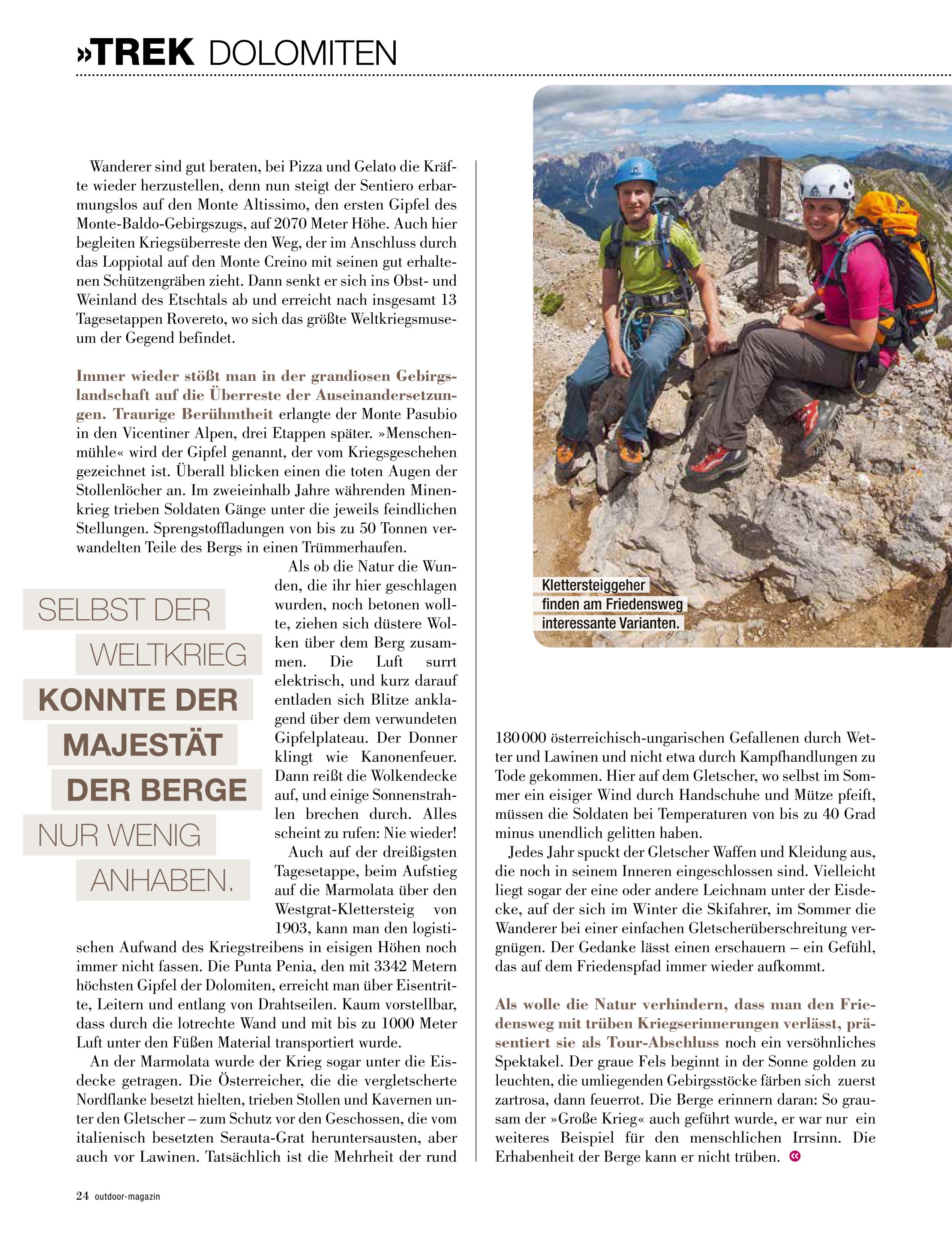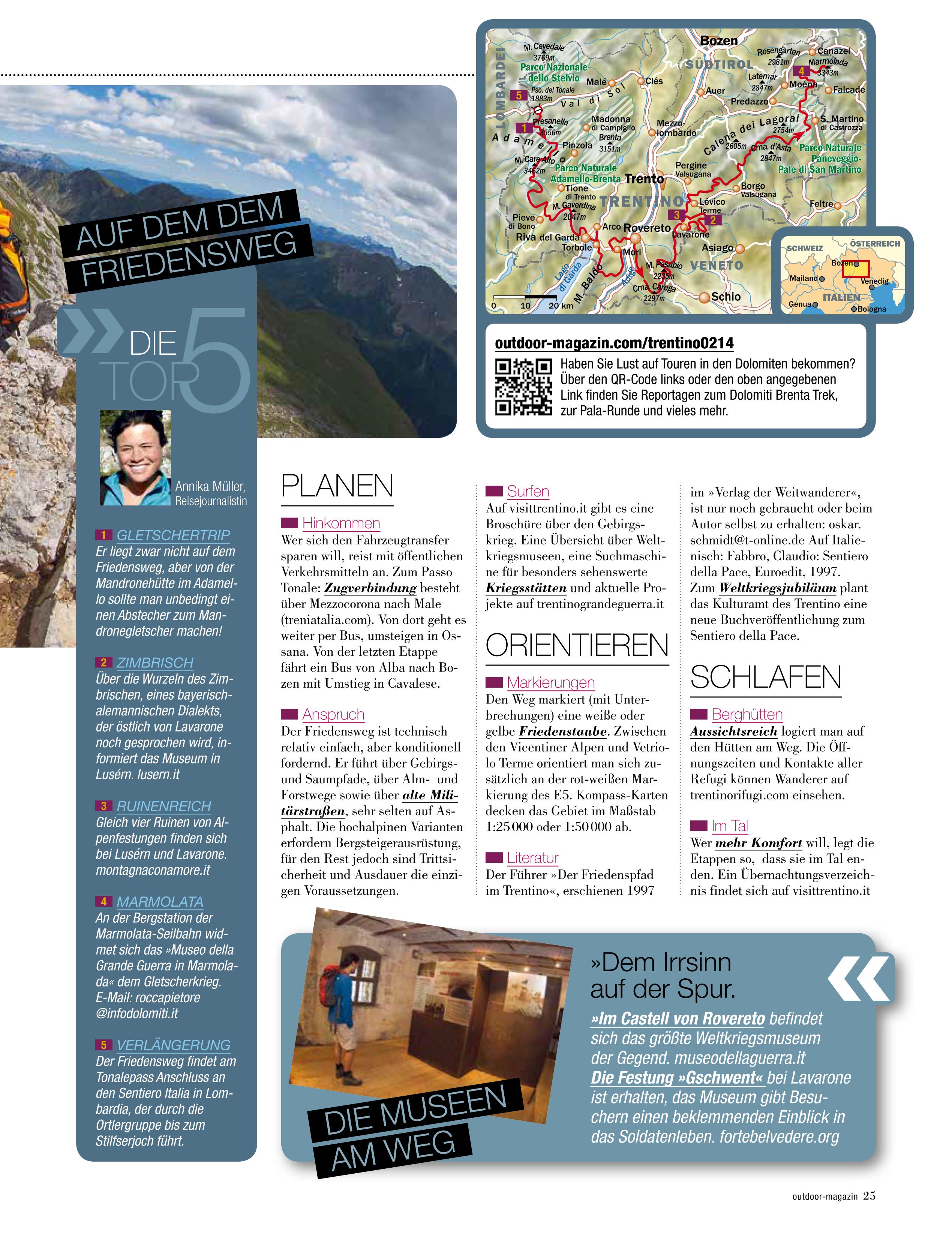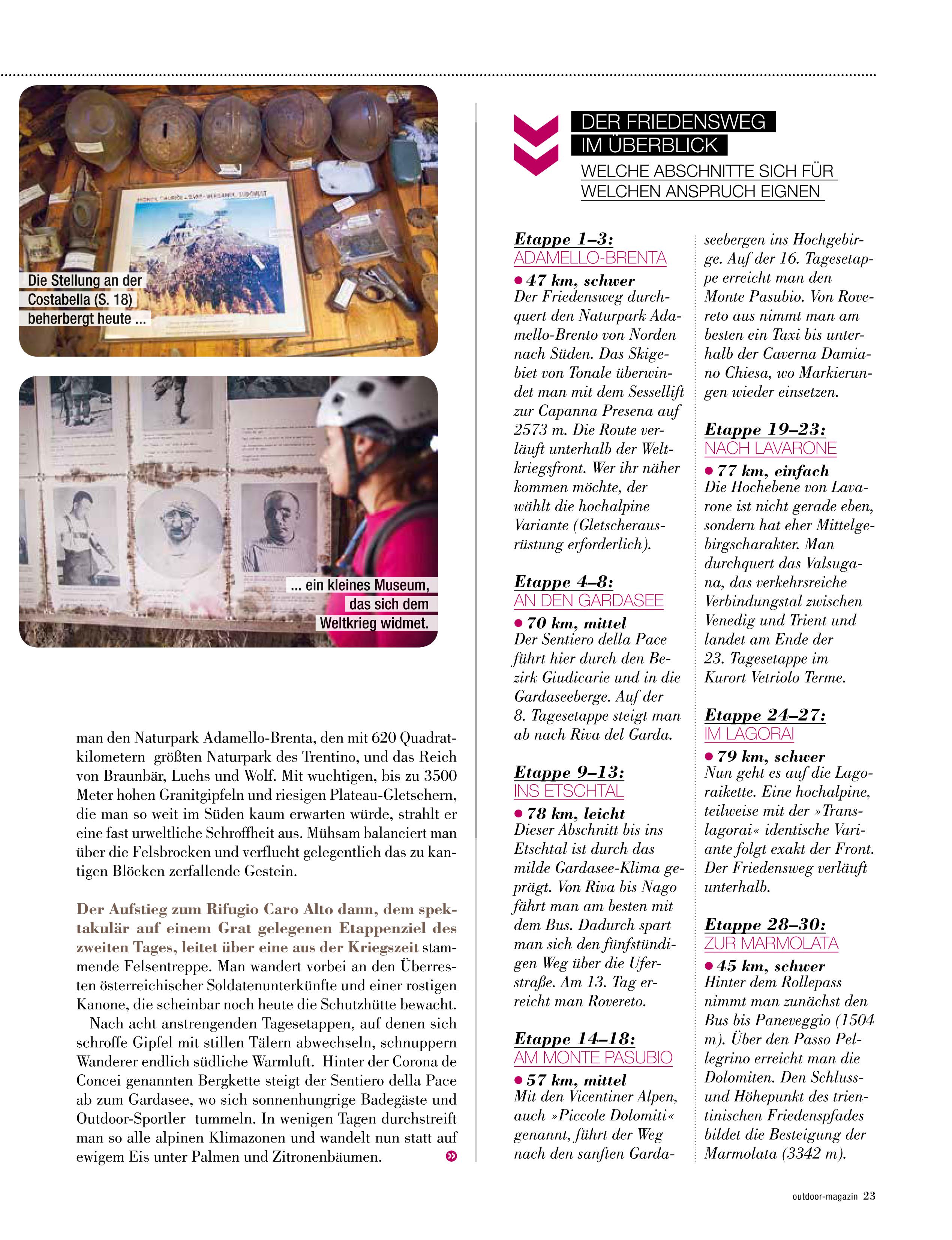 “Friedens Bewegung”- die Sentiero della Pace, erschienen in Outdoor 1, 2014