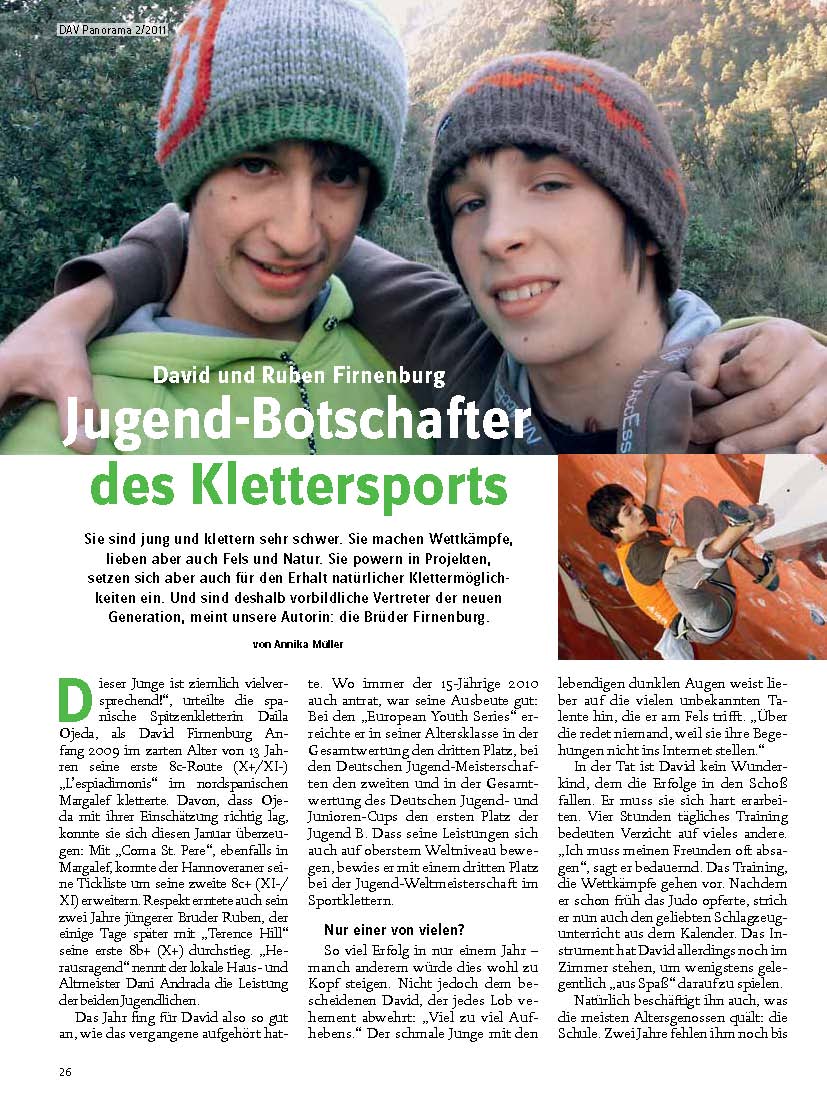Portrait der Hannoveraner Kletterer Ruben und David Firnenburg, erschienen in Panorama 2/2011. Artikel als PDF-Download: Panorama 2_2011