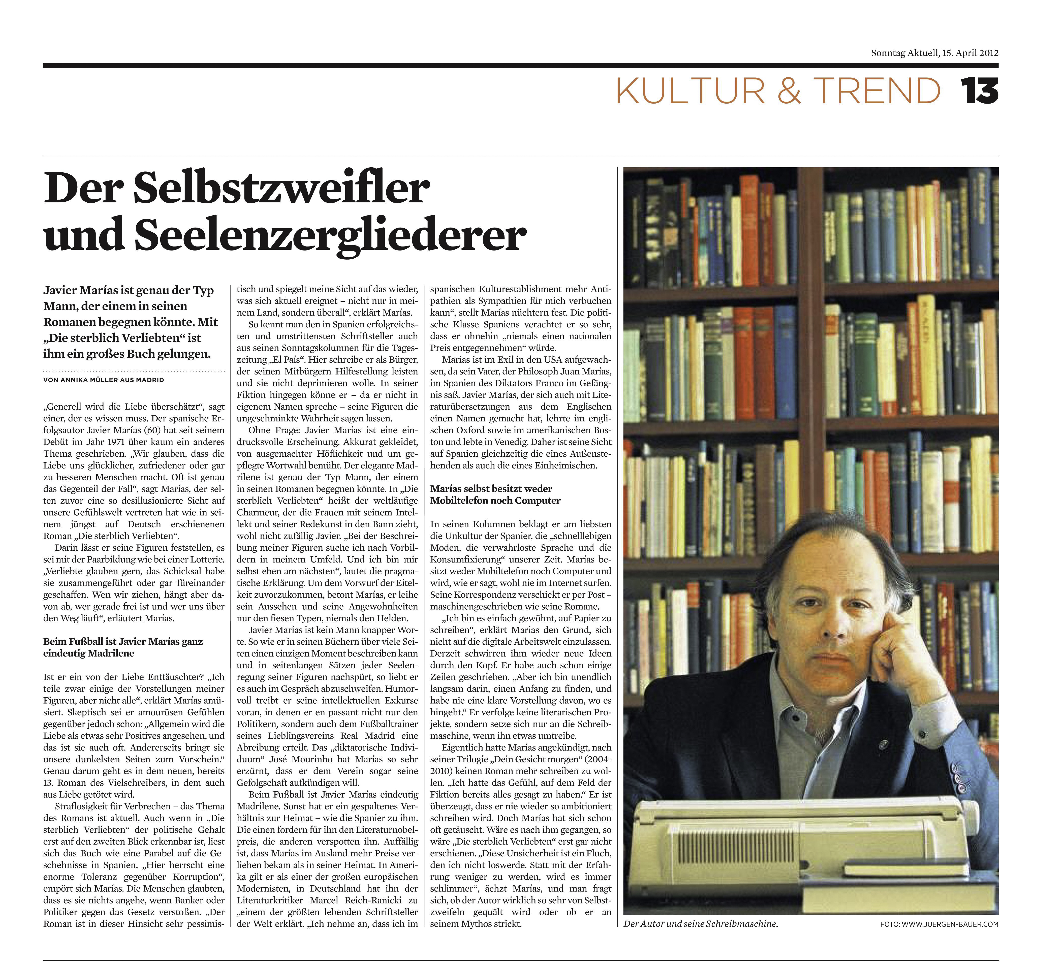 Portrait Javier Marías, erschienen in Sonntag Aktuell am 15.4.2012