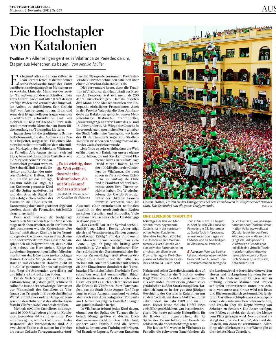 „Kataloniens Hochstabler“, erschienen in Stuttgarter Zeitung vom 2. November 2011. Download als PDF: STZ Castellers